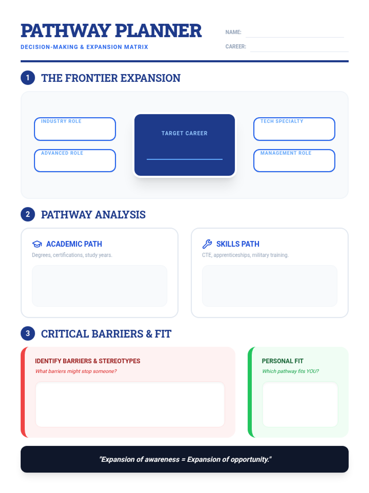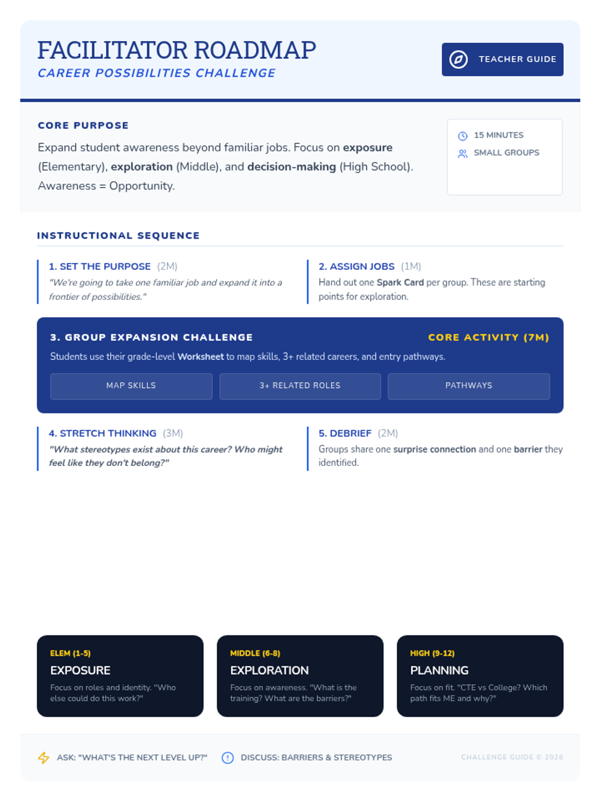 A professional development session for educators to learn how to facilitate career expansion activities that challenge student assumptions and connect learning to diverse pathways.