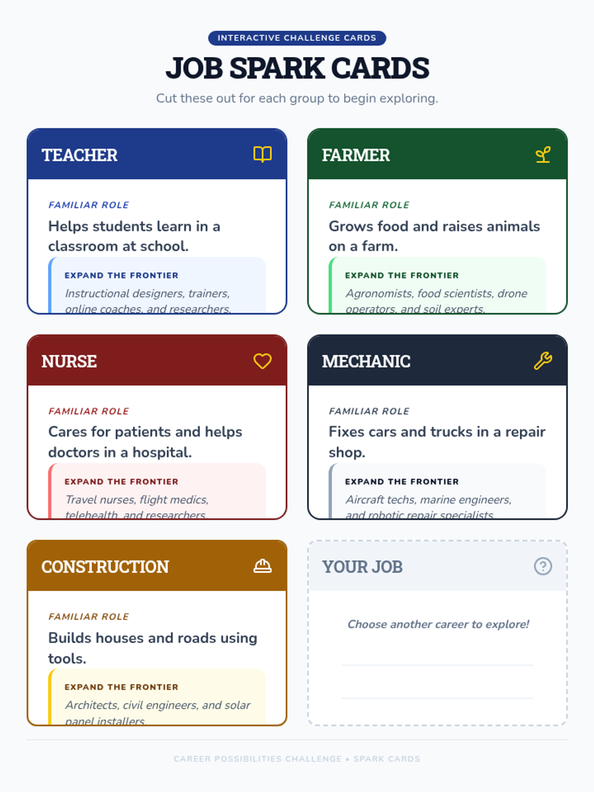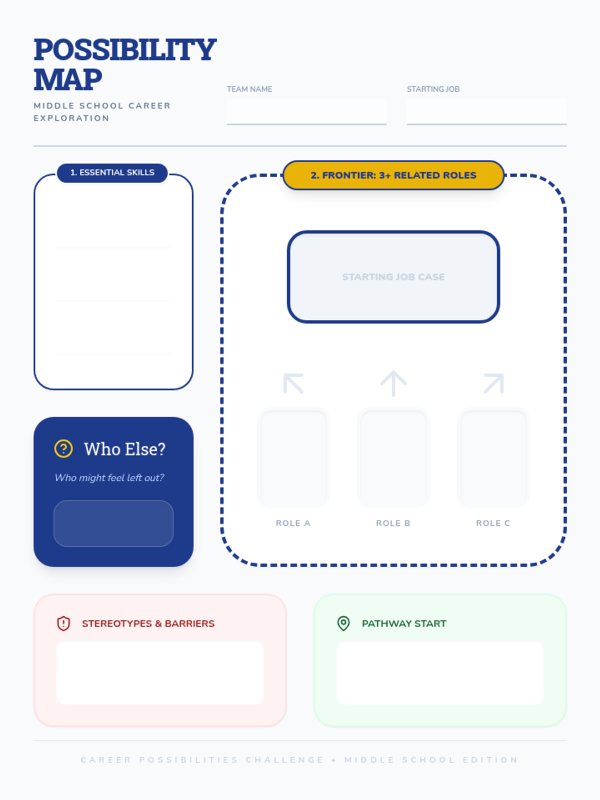 A fast-paced, interactive activity where students expand their understanding of familiar careers into broader industry pathways and explore the skills and steps needed to reach them.