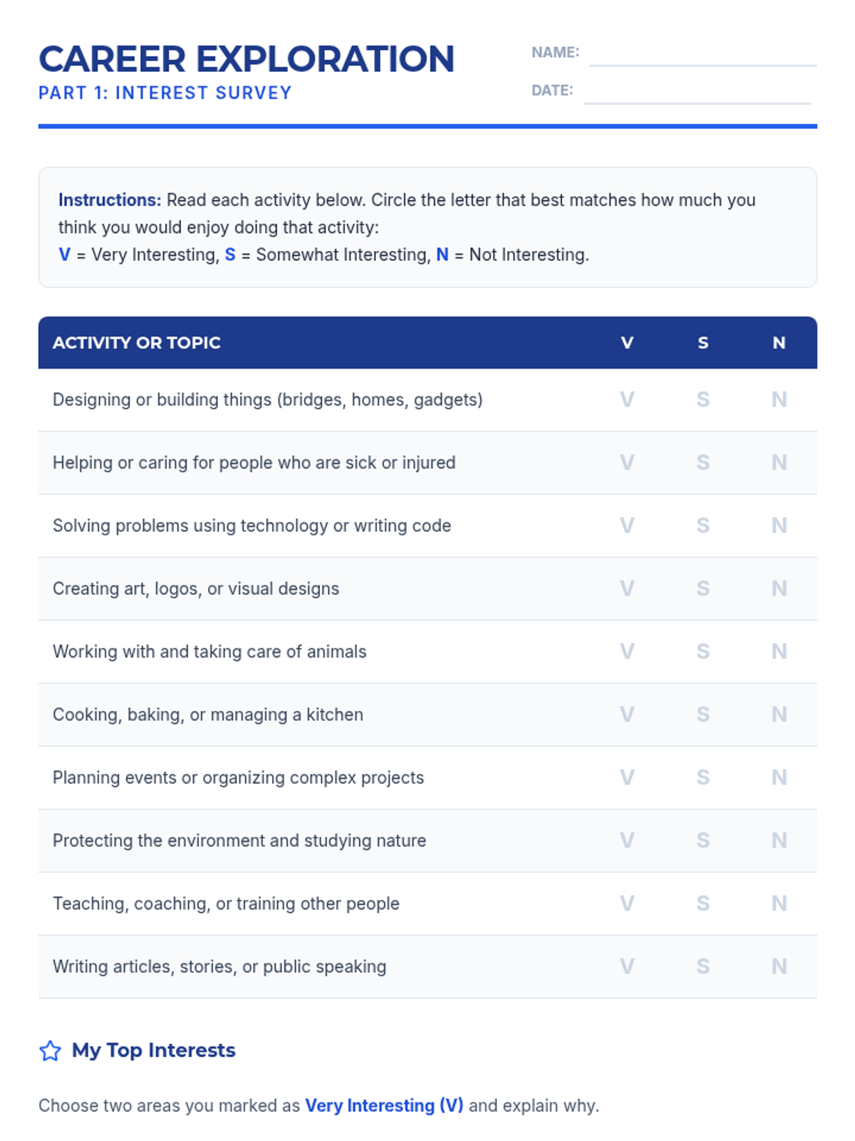 A comprehensive lesson for 8th-grade students to identify career interests using the O*NET Interest Profiler, research specific paths, and map out educational requirements.