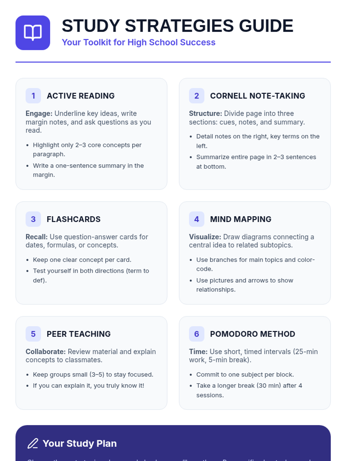 A comprehensive lesson designed to prepare middle school students for the transition to high school, focusing on GPA calculation, time management, and essential study skills.