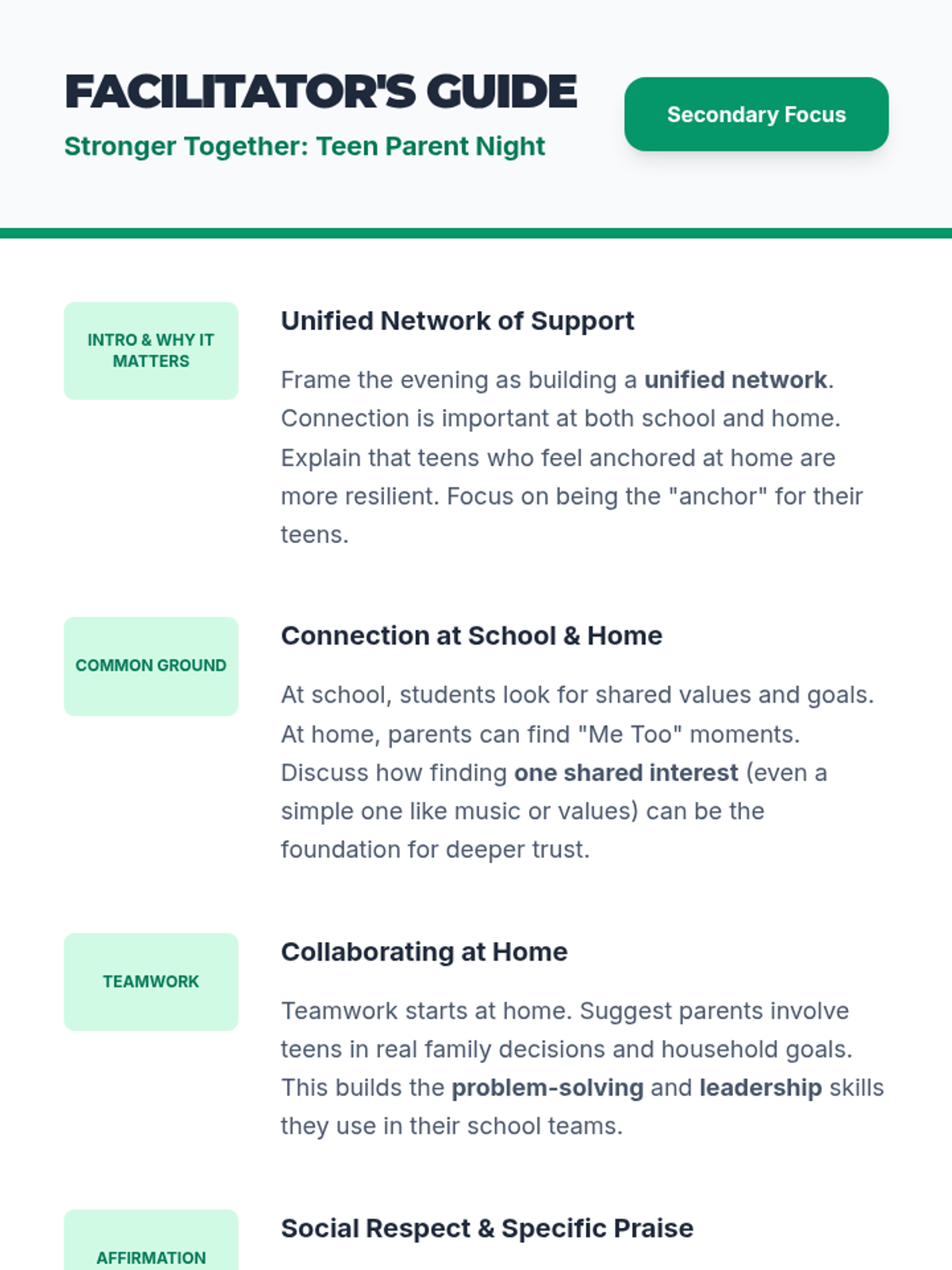 A comprehensive workshop for parents focused on building student connection, accountability, and relationship skills using the Move This World framework.