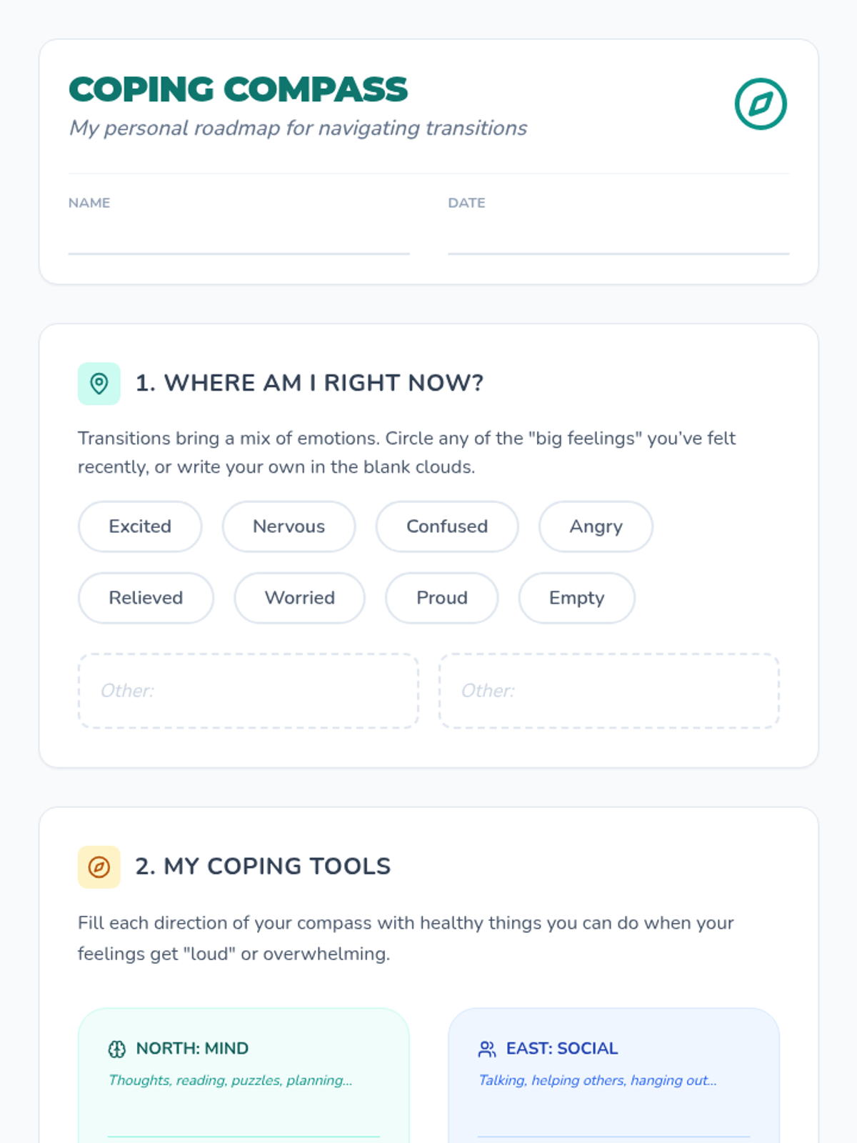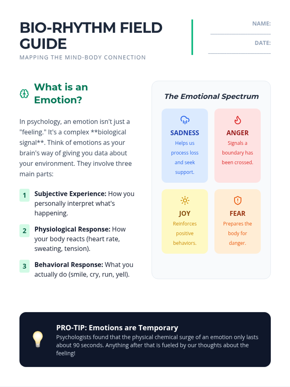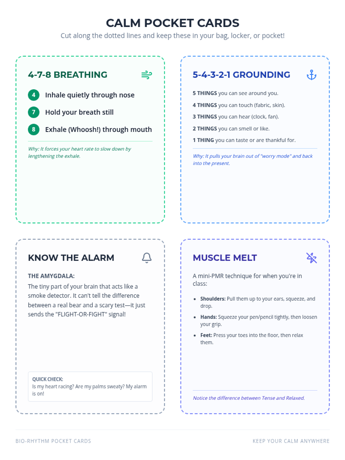 A comprehensive exploration of the psychology of emotions and the physiological impact of stress, featuring a multi-page informational guide and portable coping skill cards for middle school students.