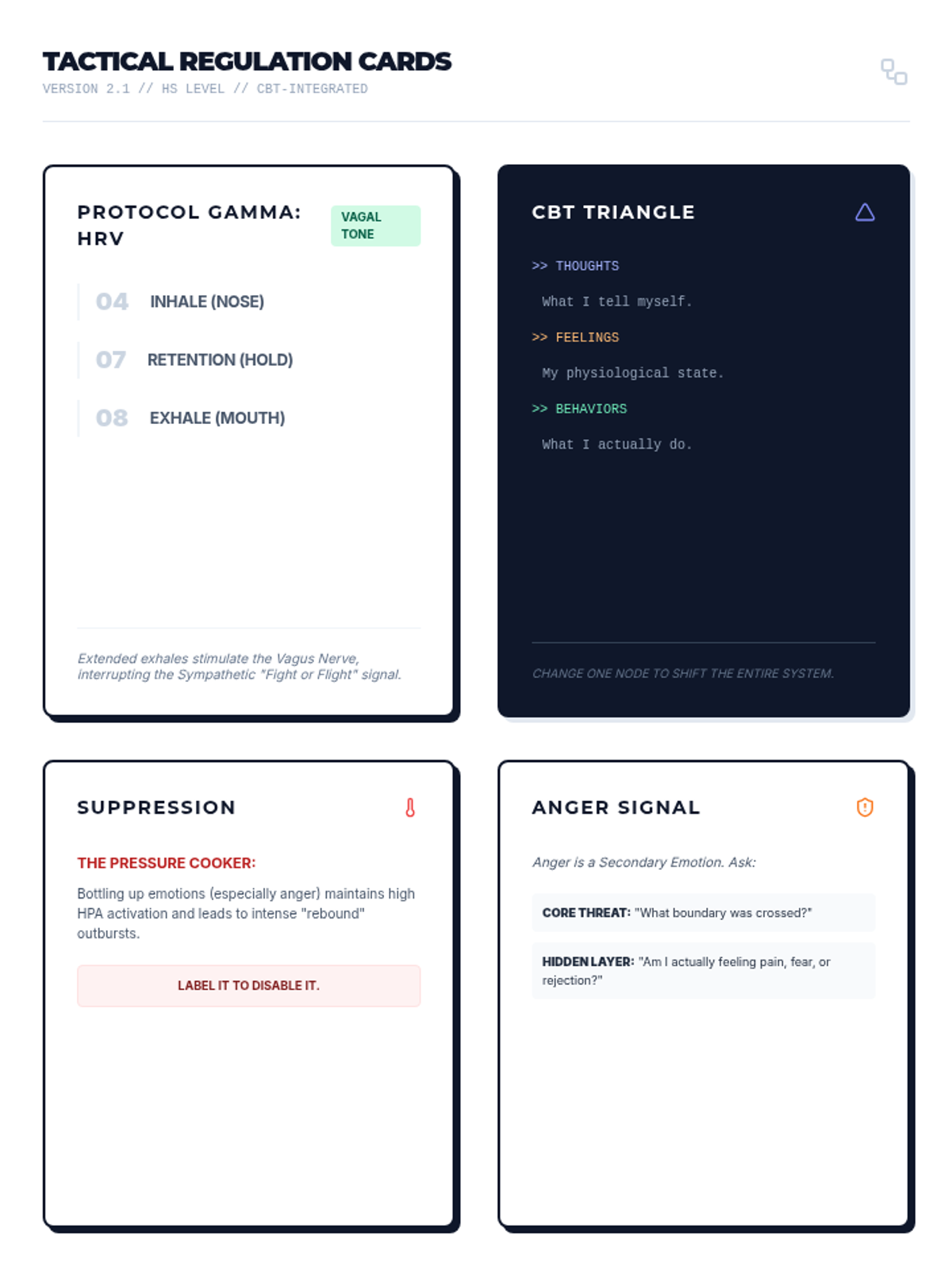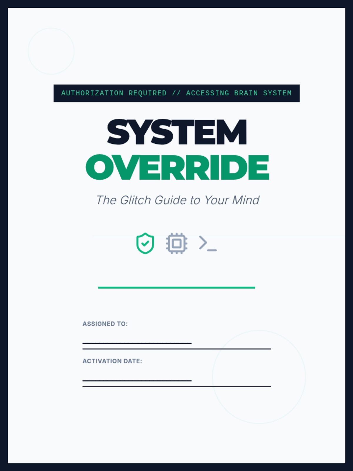 A comprehensive toolkit for 14-year-old boys to manage anxiety, intrusive thoughts, and guilt using CBT and mindfulness techniques with a tech-inspired 'System Override' theme.