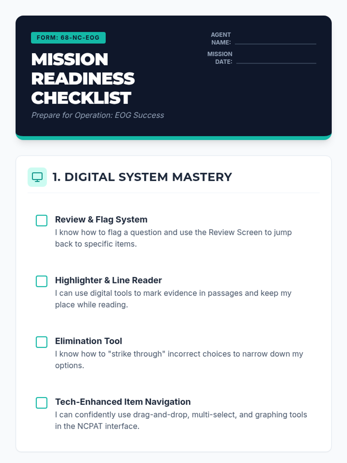 A comprehensive guide for middle schoolers to master the digital NC EOG format, focusing on navigation tools, strategic thinking, and mindset.