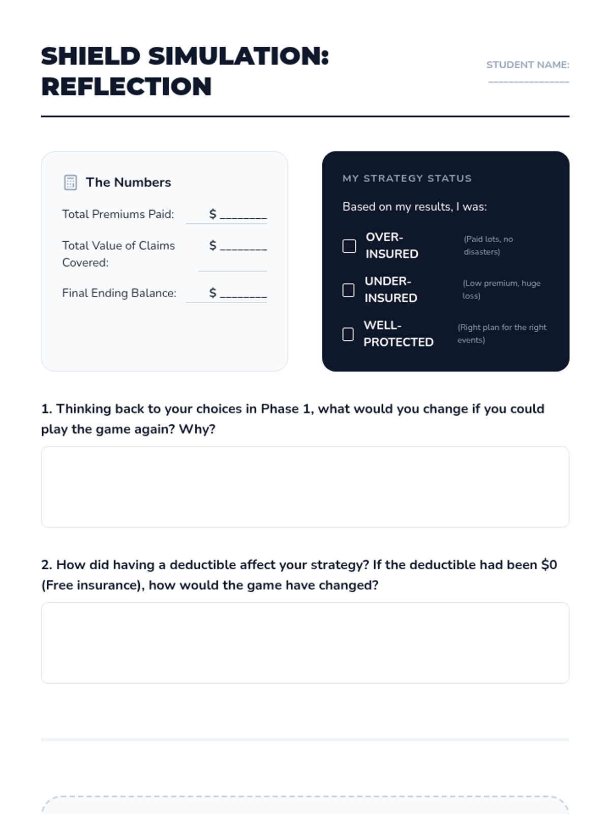 Students analyze the results of the simulation to evaluate different insurance strategies and reflect on the importance of financial protection.