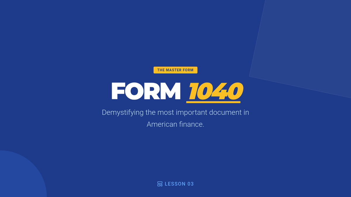 An introduction to Form 1040, focusing on the three main sections: income, deductions, and refunds/taxes owed.