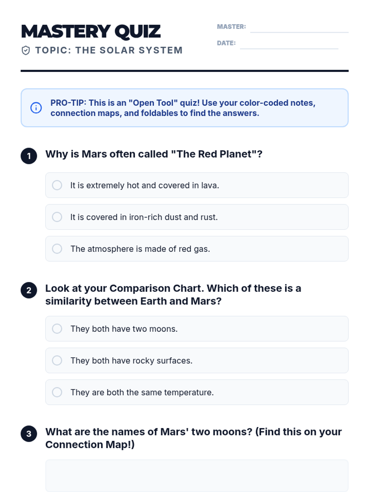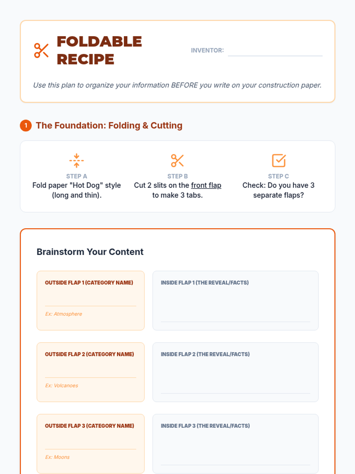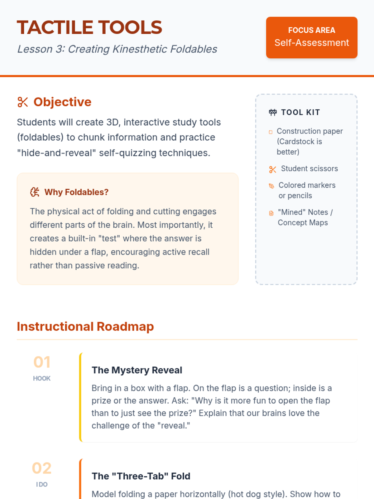 Students create tactile, interactive study tools like foldables to chunk information and encourage self-quizzing.