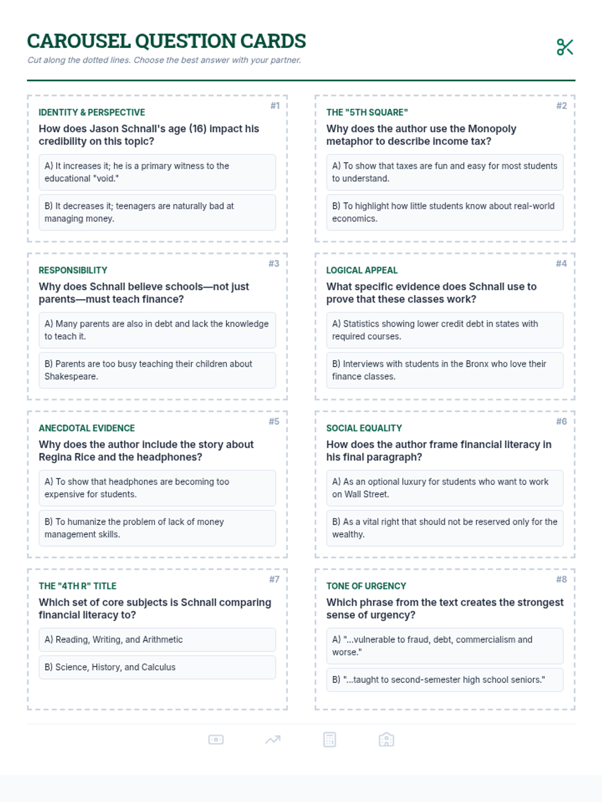 This Grade 8 ELA lesson guides students through RI.8.8 by analyzing the structural integrity of arguments regarding mandatory community service. Students will evaluate claim strength, assess evidence quality, and identify logical fallacies using an architectural blueprint theme.