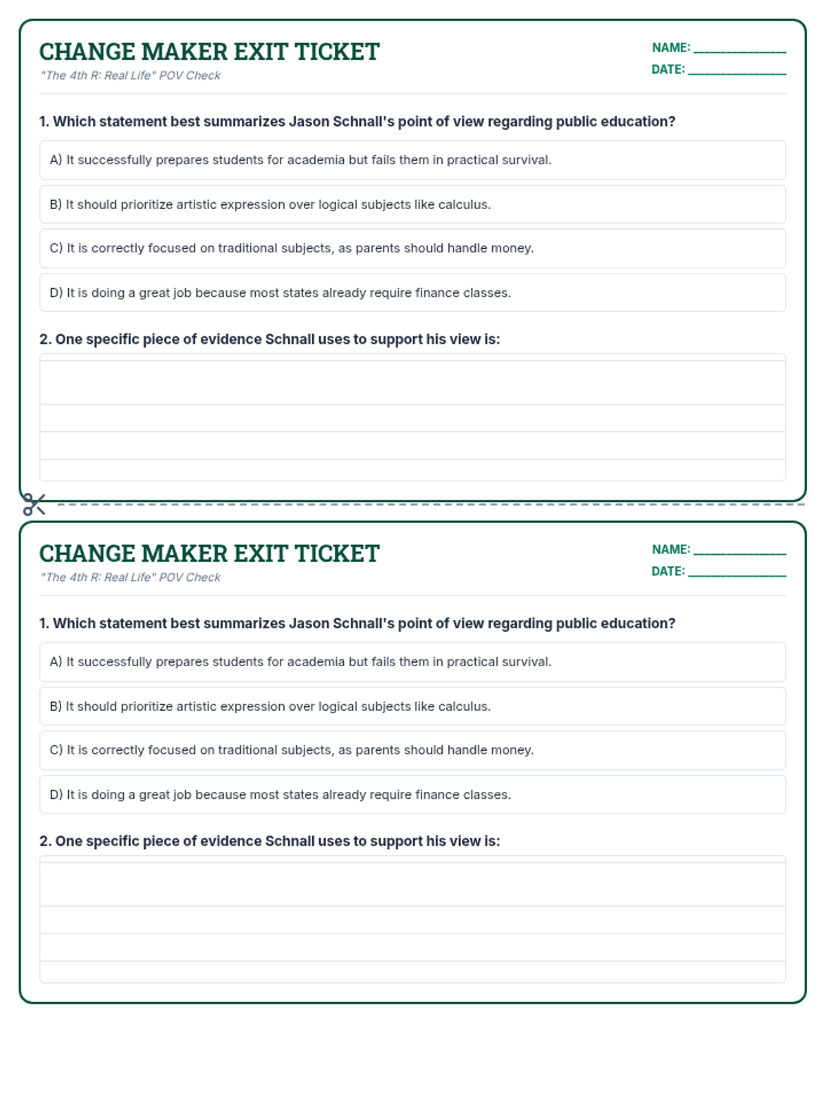 Students draft their own syllogisms regarding current events or school policies and peer-review them for structural validity.