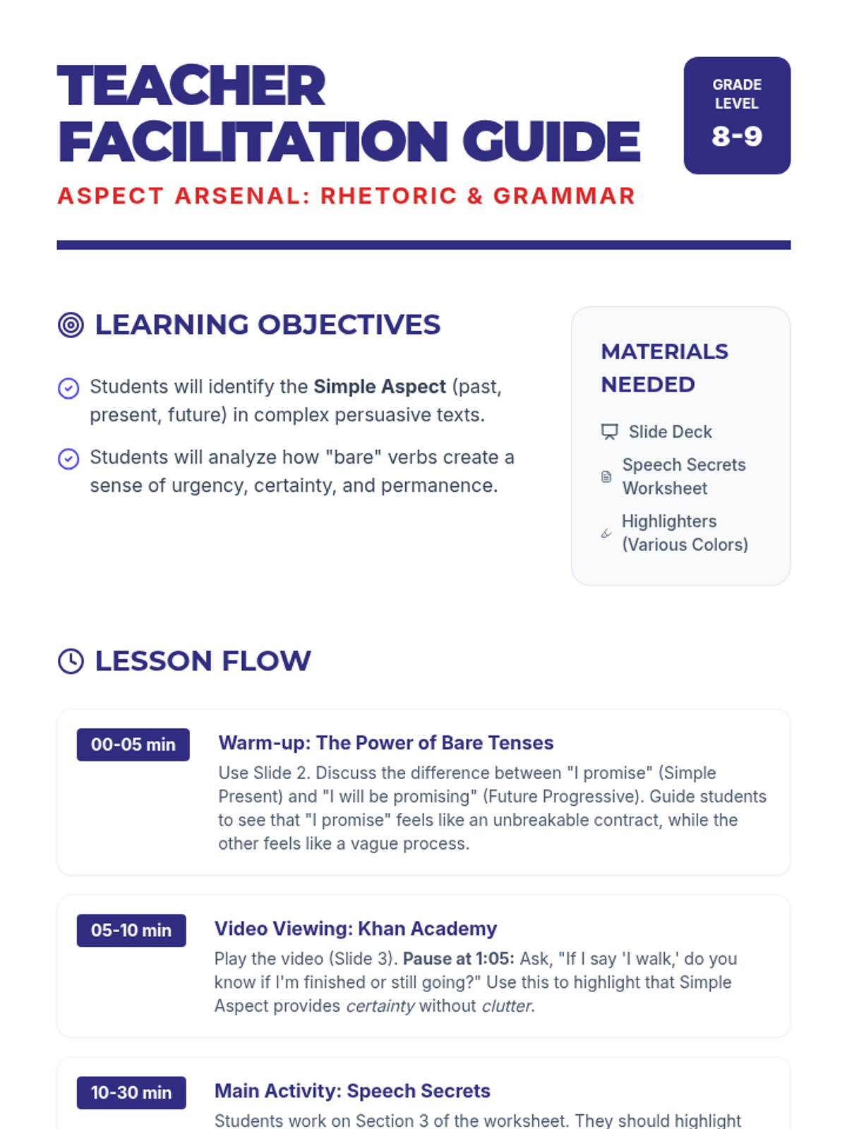 A 90-minute intensive lesson designed to bridge the gap between proficient (8) and advanced (10) scores on the Texas English 1 Argumentative ECR, focusing on counter-arguments, syntax, and sophisticated word choice.