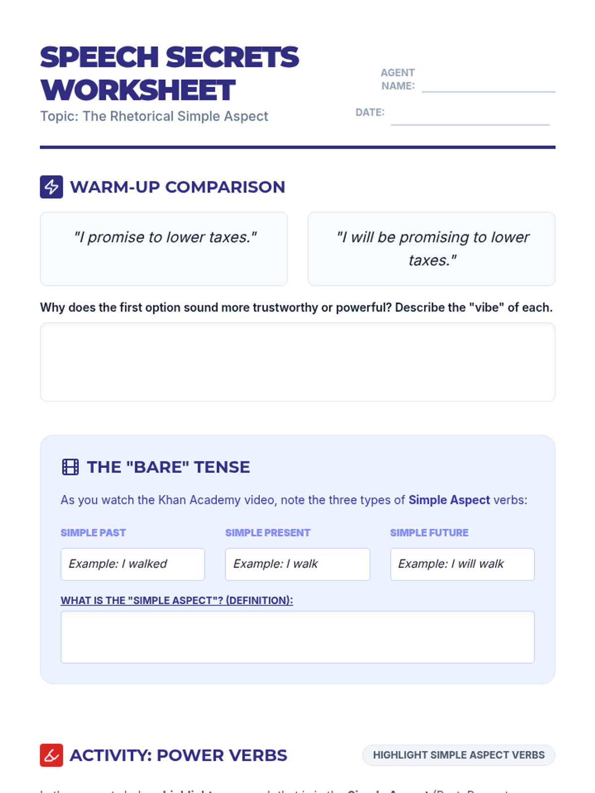 In this culminating workshop, students apply their knowledge to a paragraph-length editing task. They analyze a text heavy with passive voice, determine where active voice would improve flow, and edit for conciseness. Students reflect on how these changes affect the overall tone.