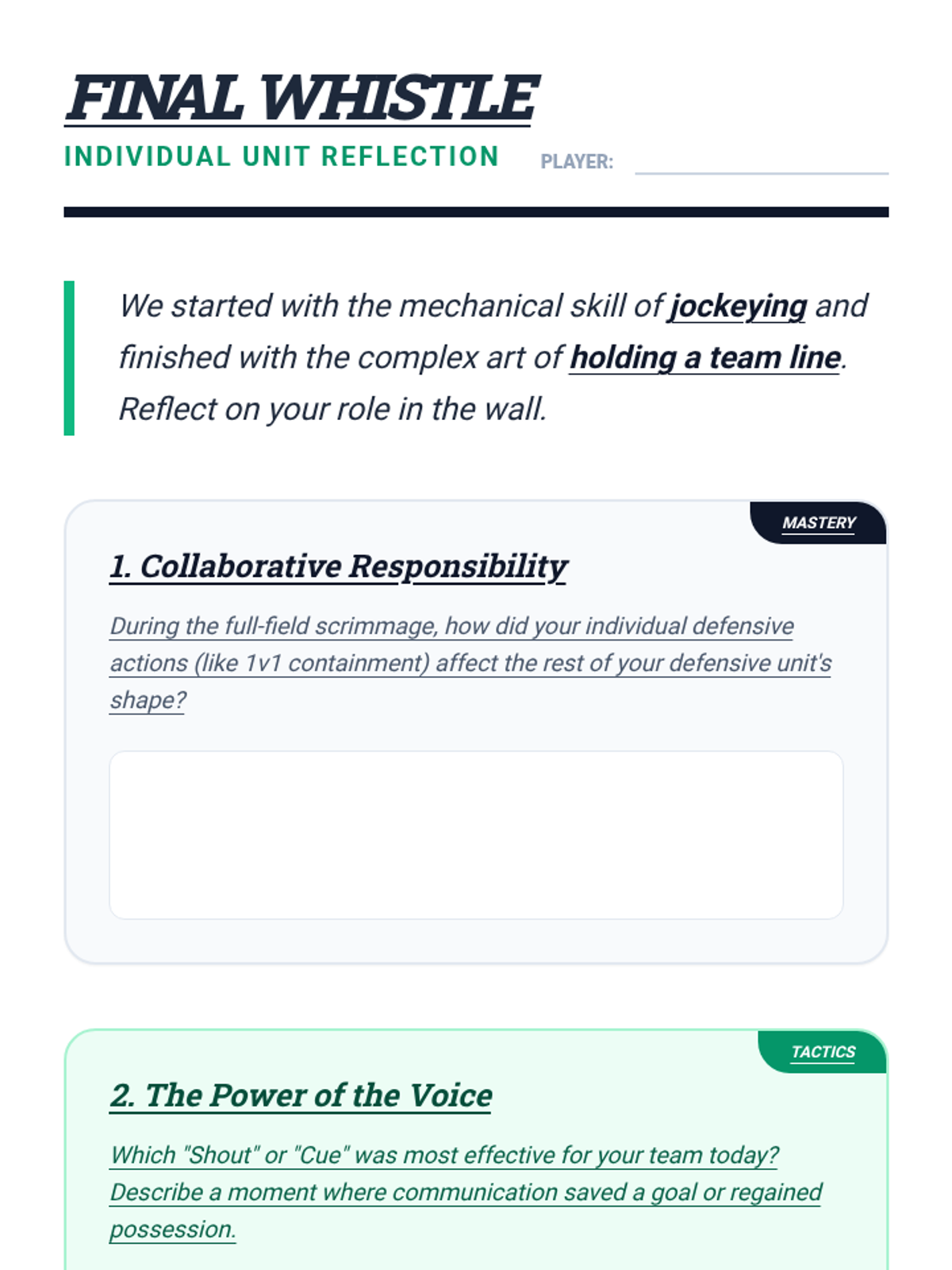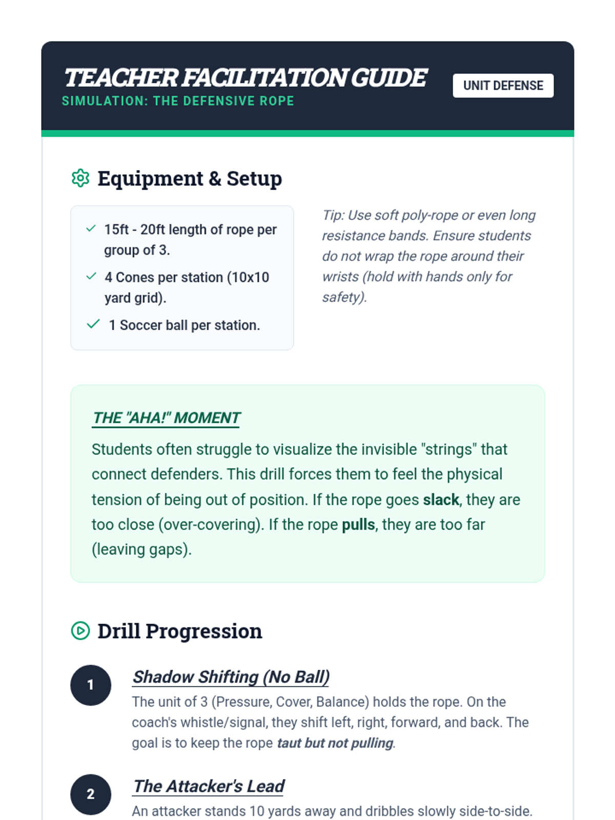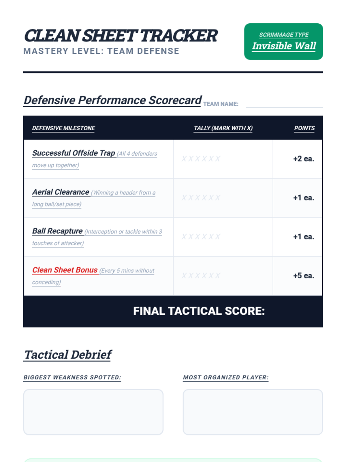 A culminating game-based lesson where students apply all defensive principles in a full-field scrimmage focused on maintaining a compact shape and clean sheet.