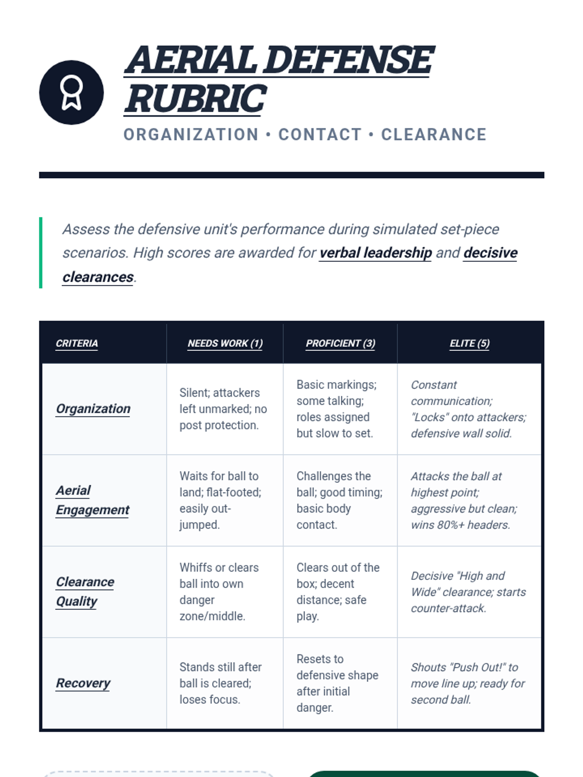 Focuses on the organizational requirements of defending corners and free kicks, emphasizing marking responsibilities and aerial clearances.