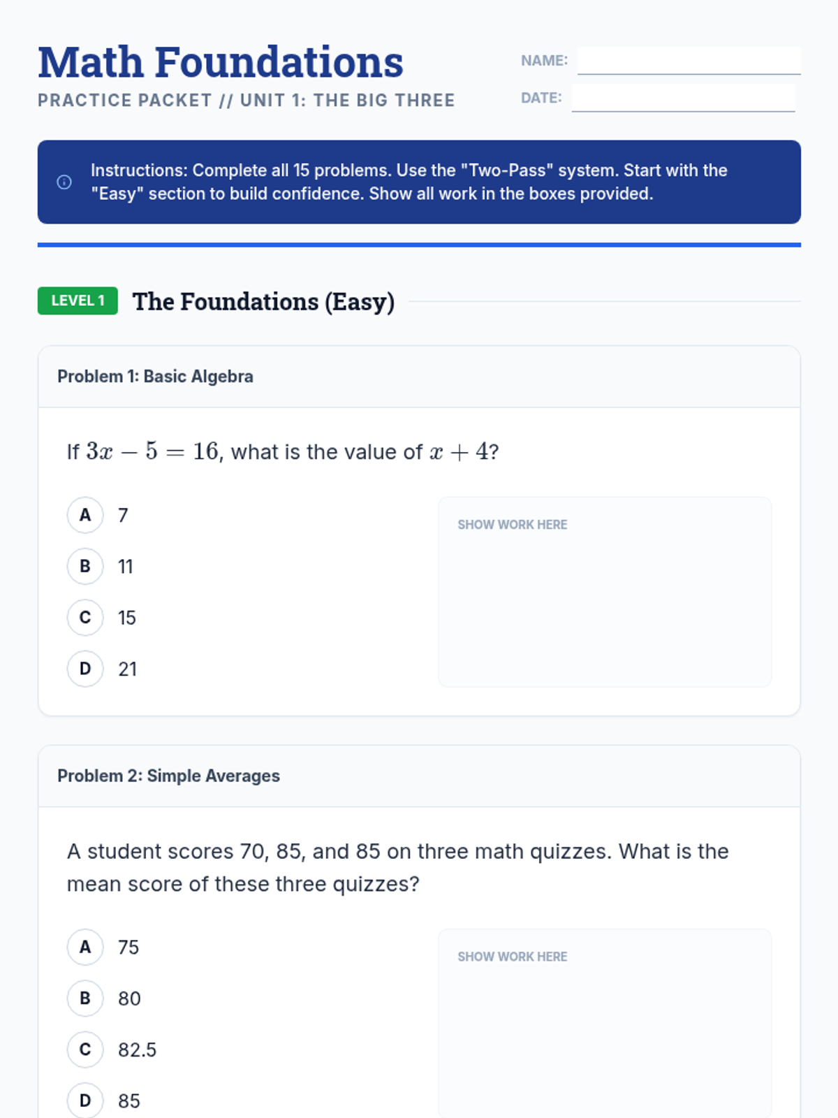 Foundation Practice Worksheet