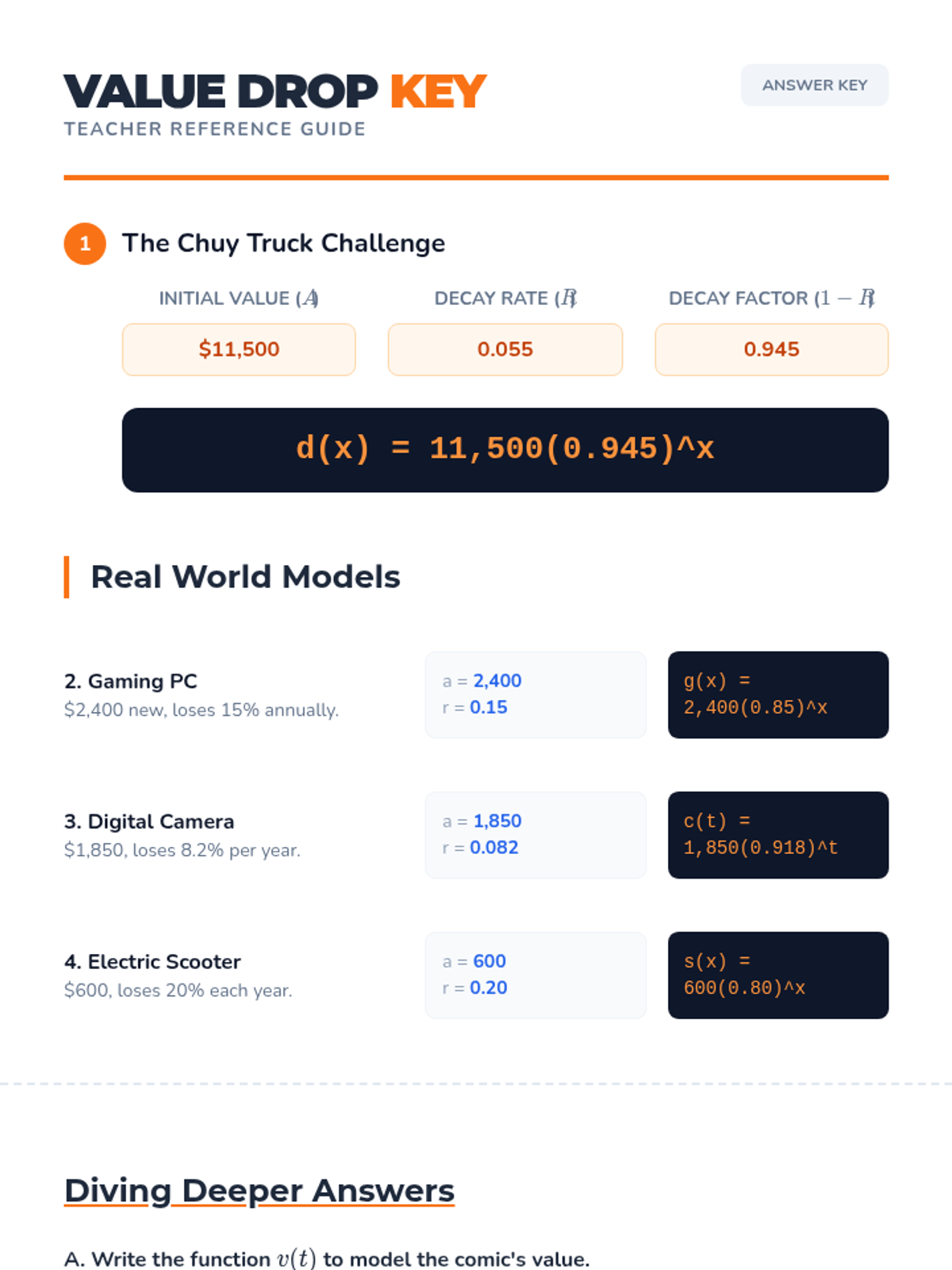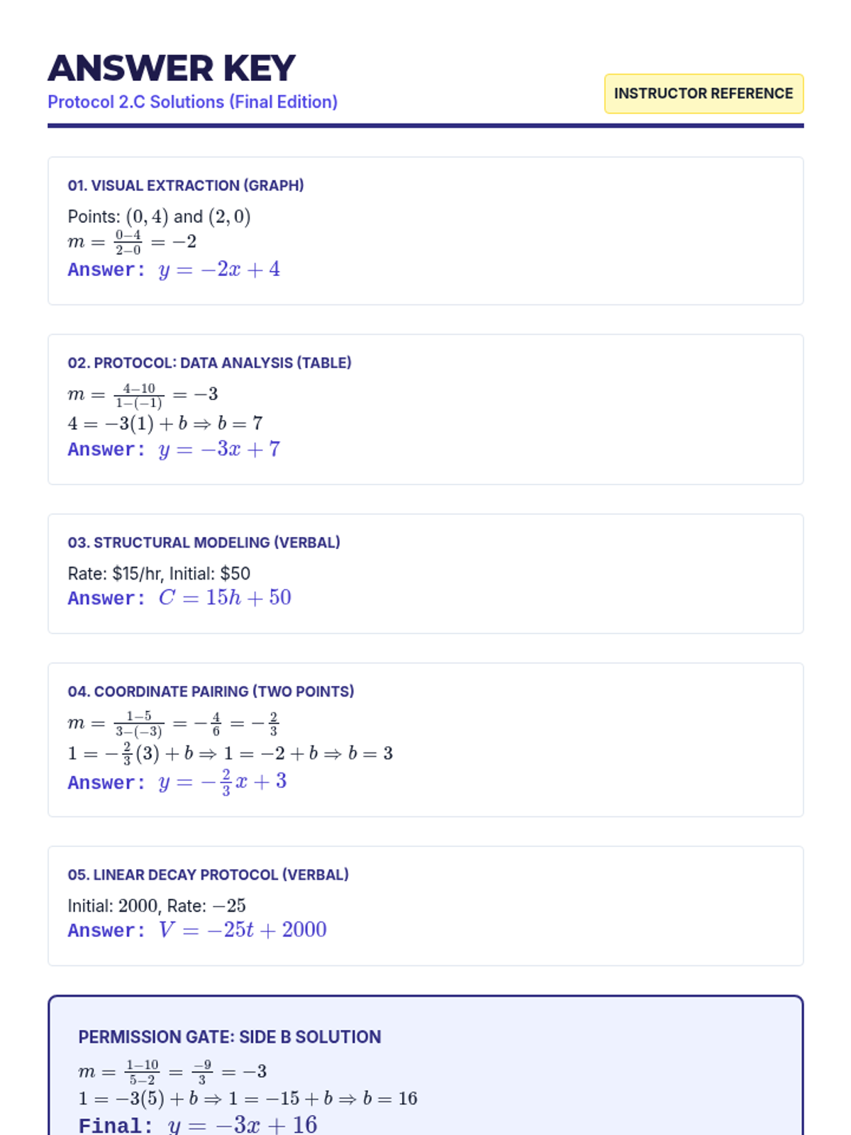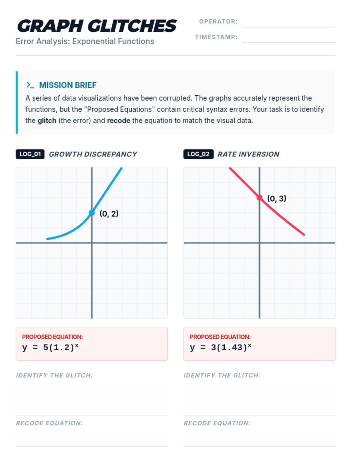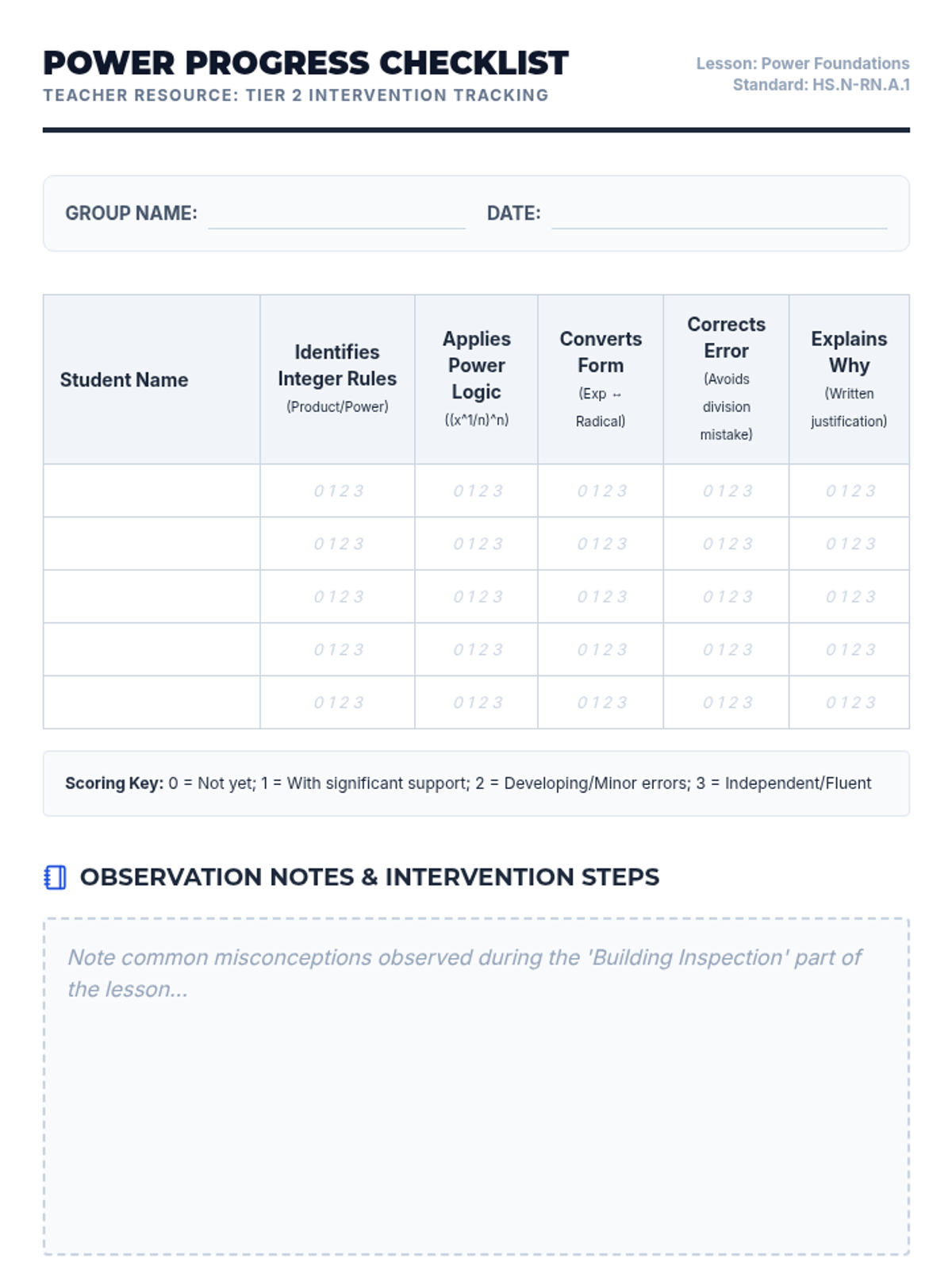 A small-group intervention lesson designed to help students identify and interpret the parameters of linear ($mx+b$) and exponential ($ab^x$) functions within real-world contexts. Includes scaffolded matching activities and a structured writing task for progress monitoring.