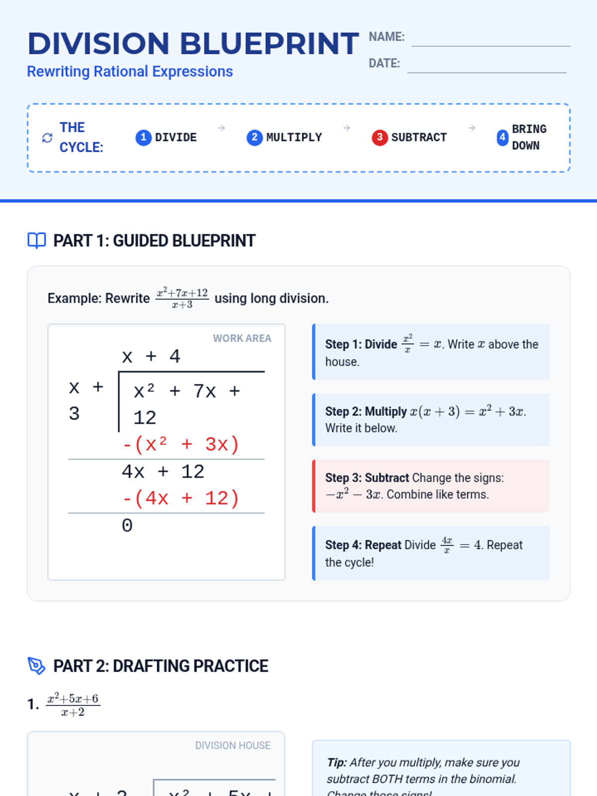 Division Blueprint Worksheet