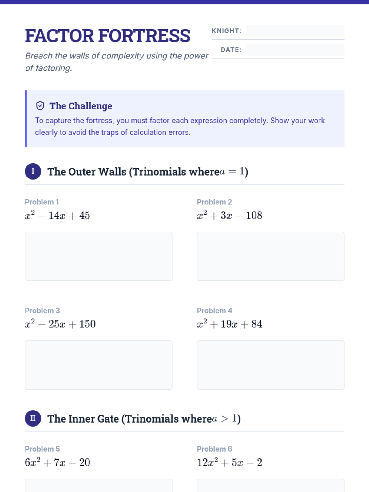 Factoring Forge Worksheet