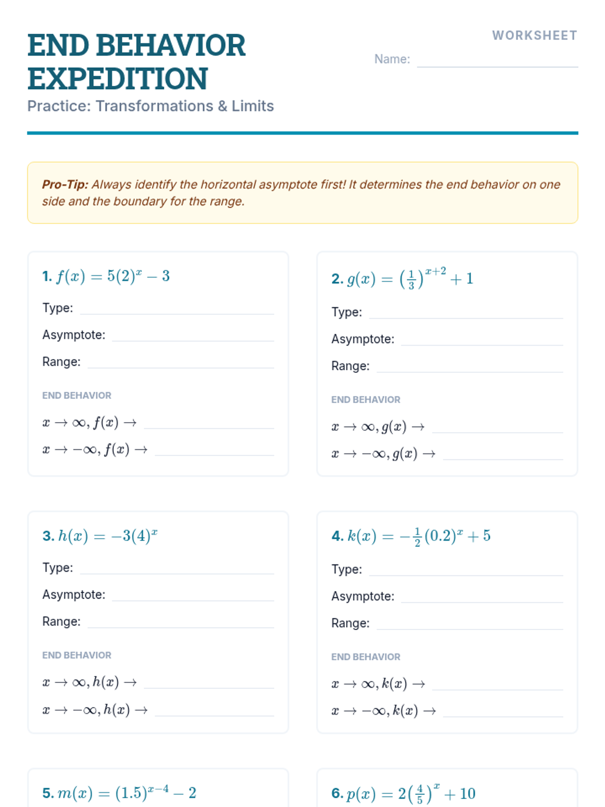 End Behavior Expedition Worksheet