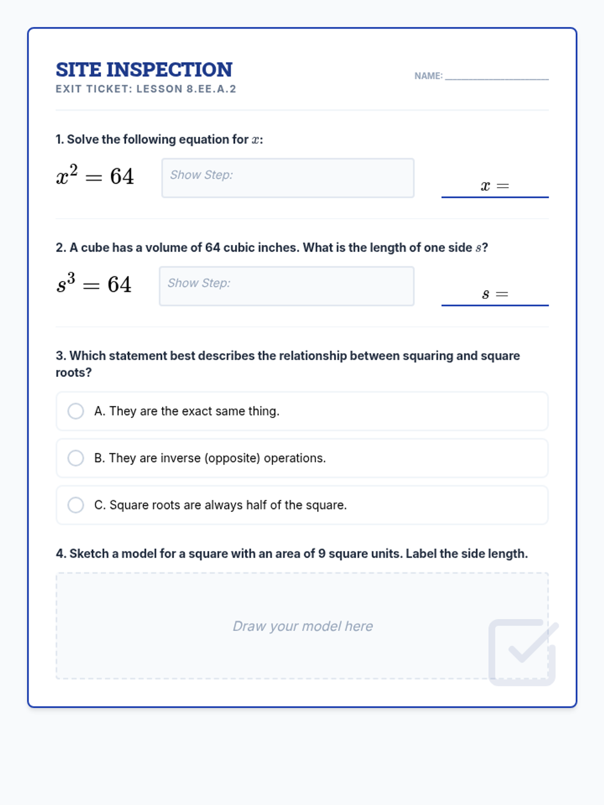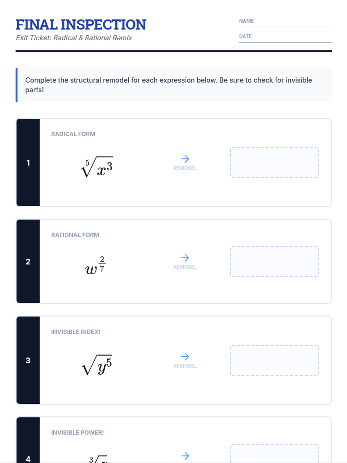 Division Blueprint Exit Ticket