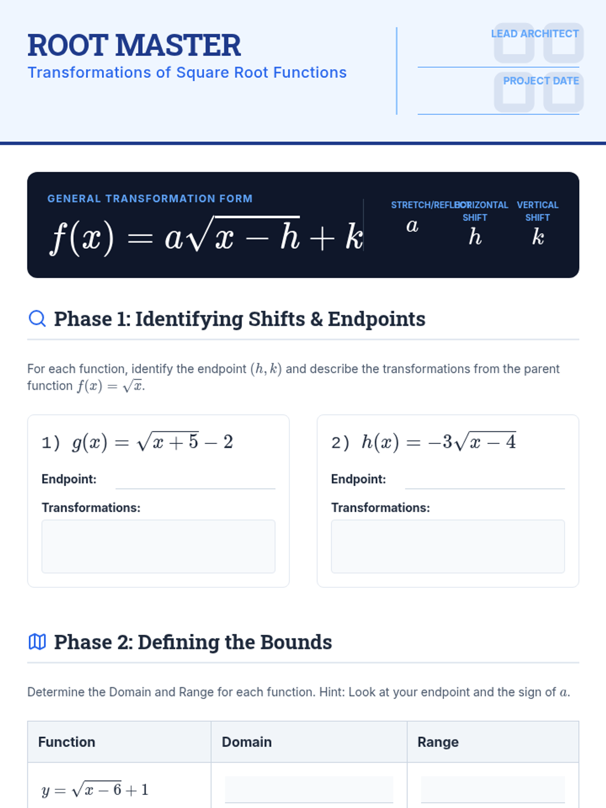 Operation Blueprints Worksheet