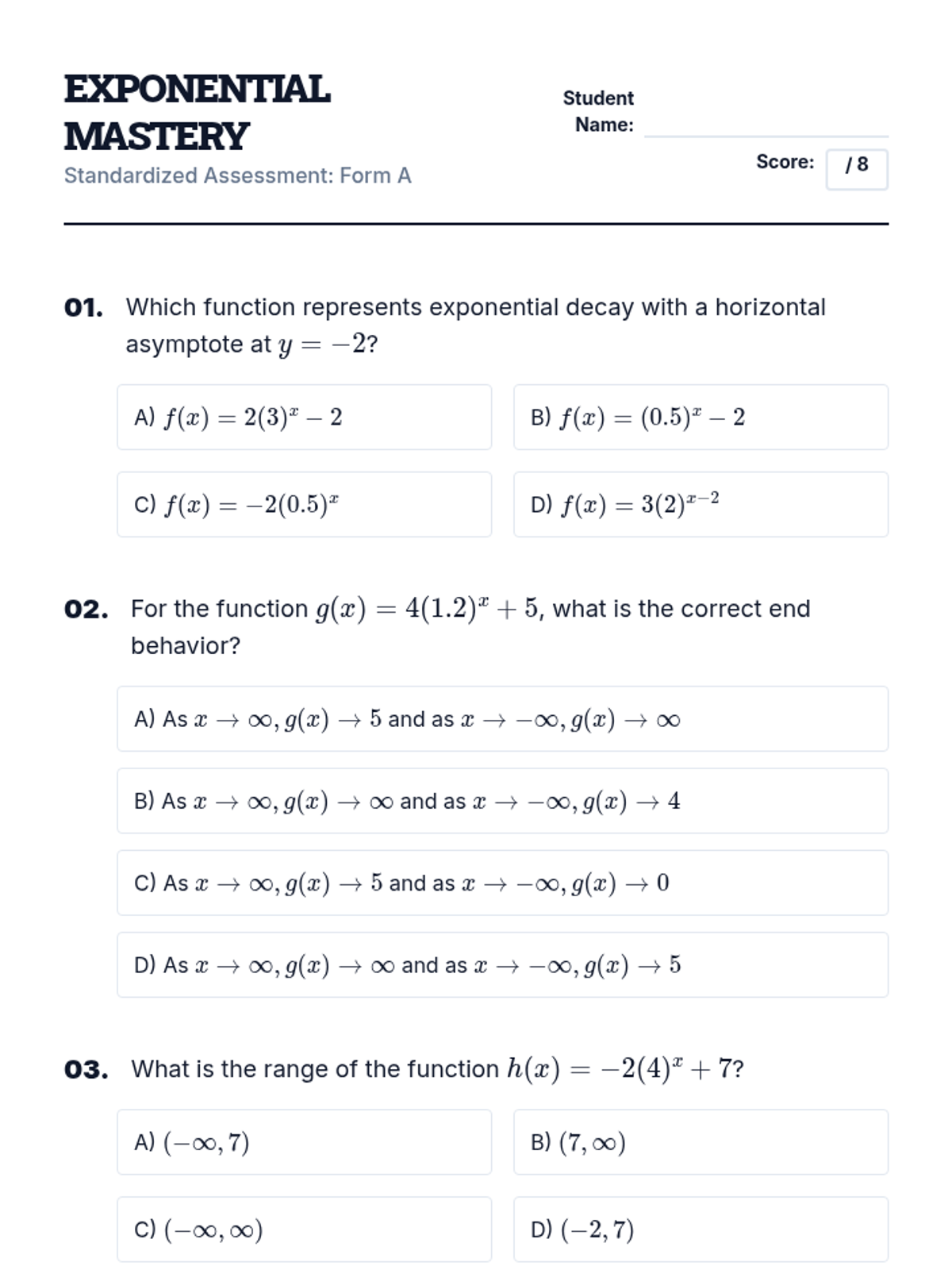 Exponential Mastery Quiz