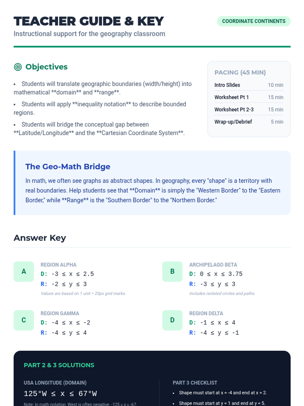 Coordinate Continents Teacher Guide