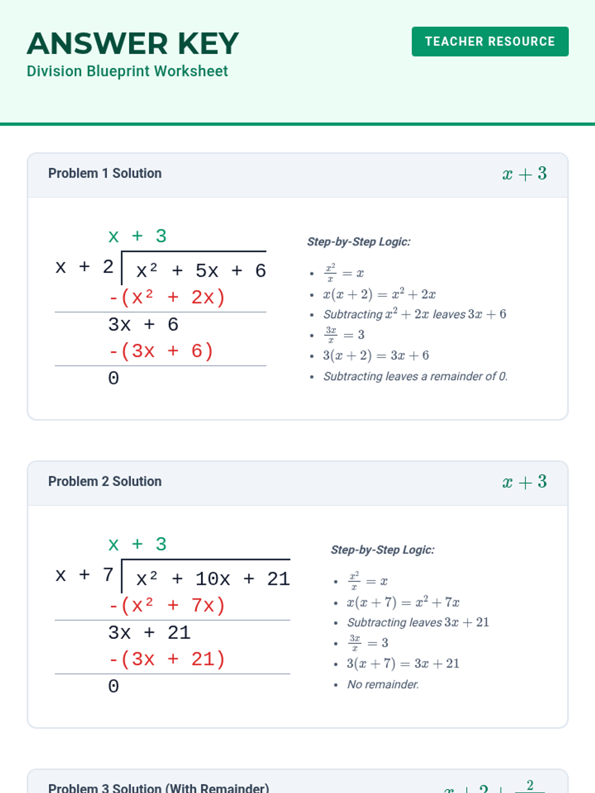 Division Blueprint Answer Key