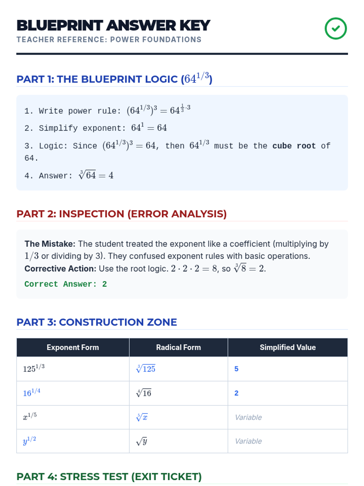 Exit Ticket Answer Key