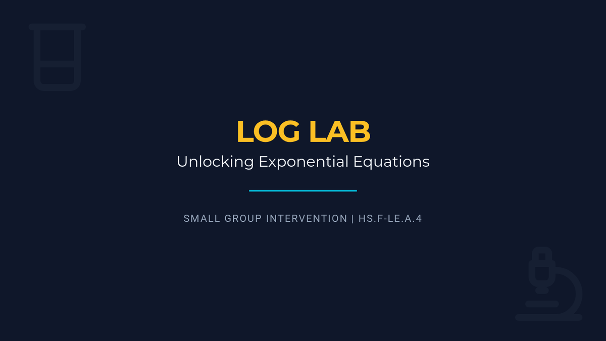 A Tier 2 small group intervention lesson focused on solving exponential equations of the form ab^(ct)=d by isolating the exponential term, converting to logarithms, and evaluating with technology. This lesson provides scaffolded support for students to master the algebraic steps and technological execution required by Colorado standard HS.F-LE.A.4.