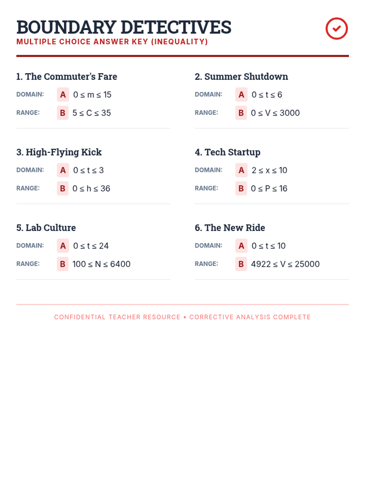 A comprehensive lesson on identifying and interpreting the domain and range of linear, quadratic, and exponential functions within real-world contexts. Students will practice distinguishing between continuous and discrete sets and determining reasonable boundaries for independent and dependent variables.