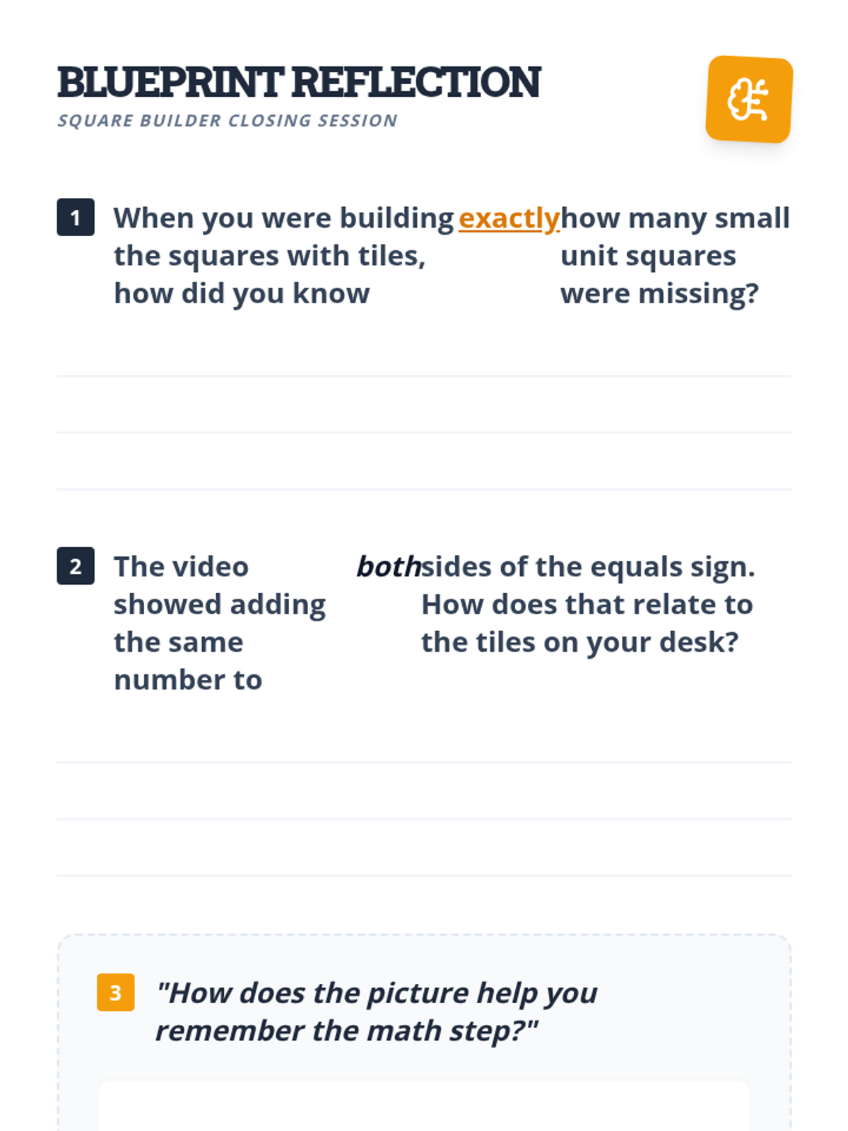 A visual introduction to completing the square using area models and algebra tiles, bridging the gap between physical geometry and algebraic manipulation for 8th and 9th grade students.