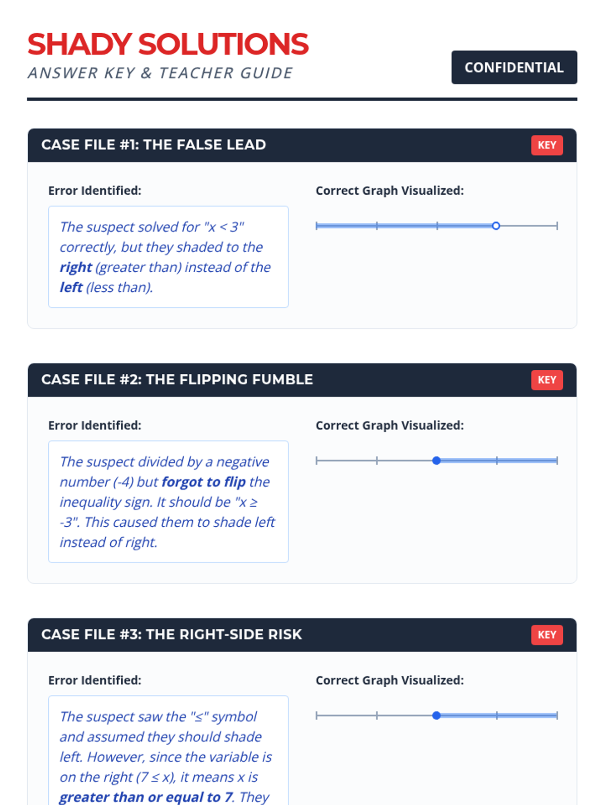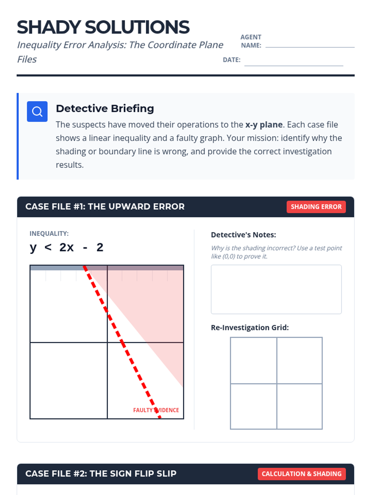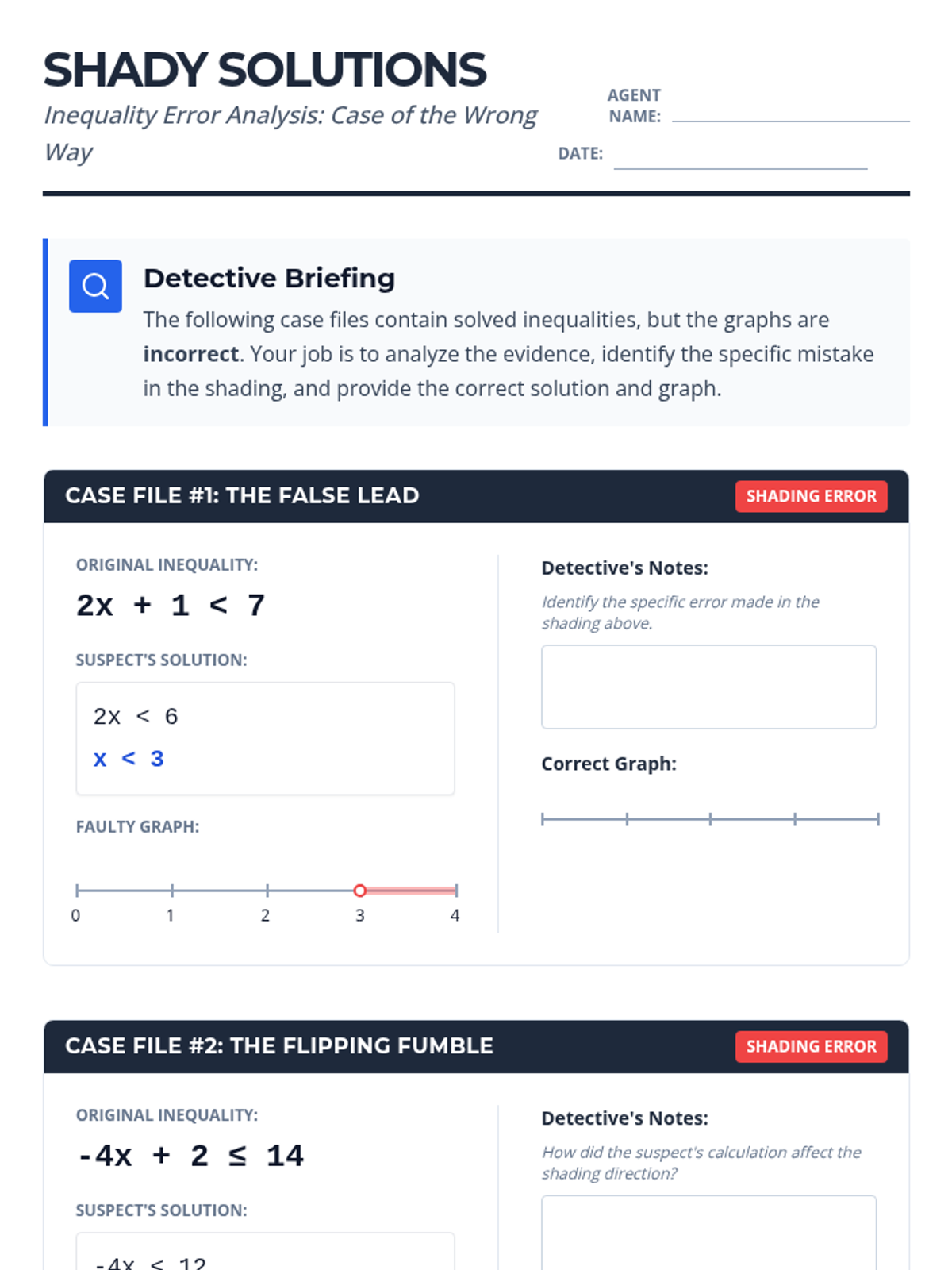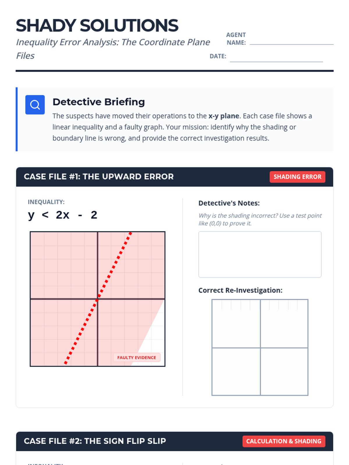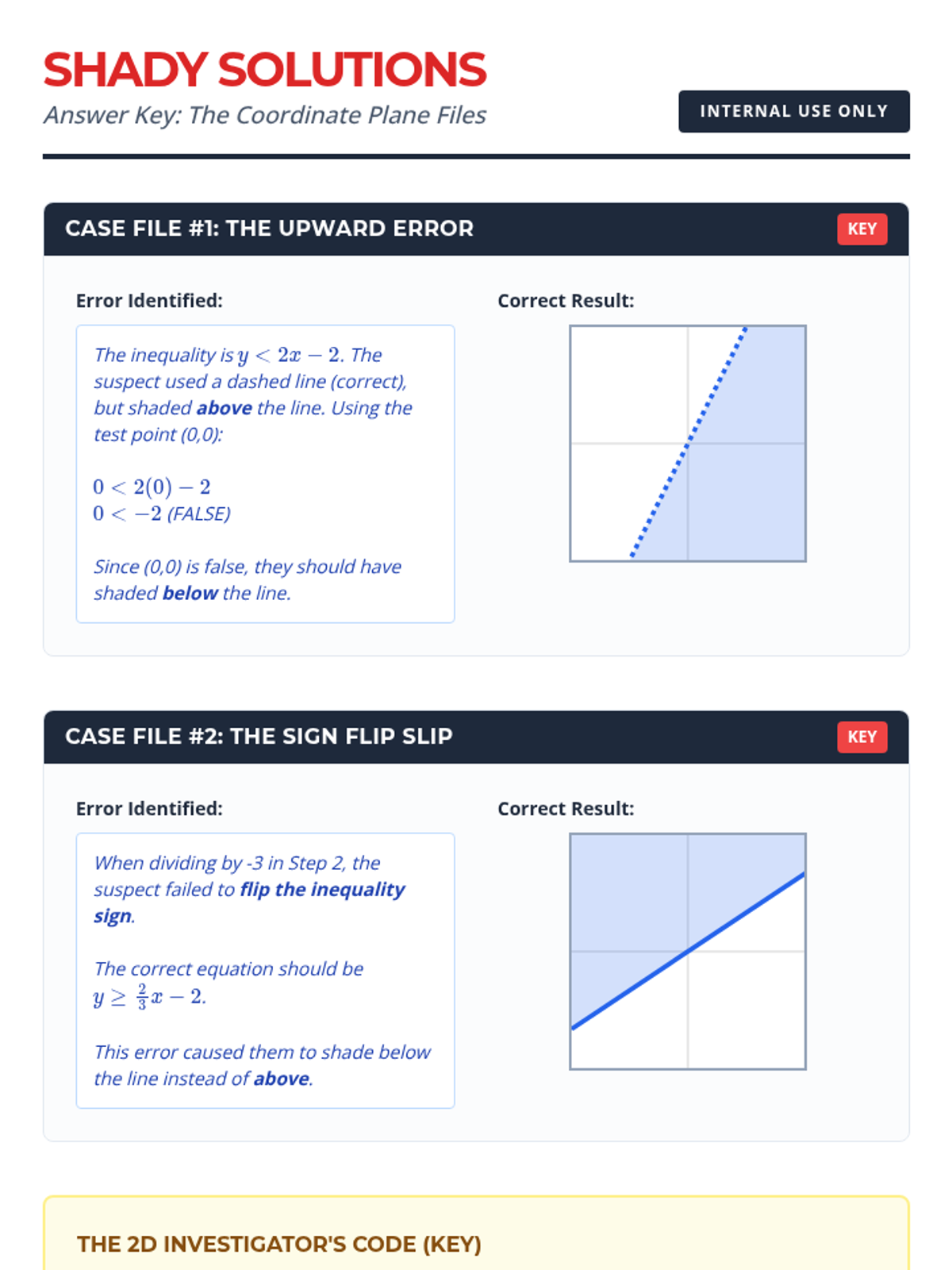 A 7th-grade lesson focused on identifying and correcting common errors in two-step inequality graphs, specifically focusing on shading direction and sign flips.