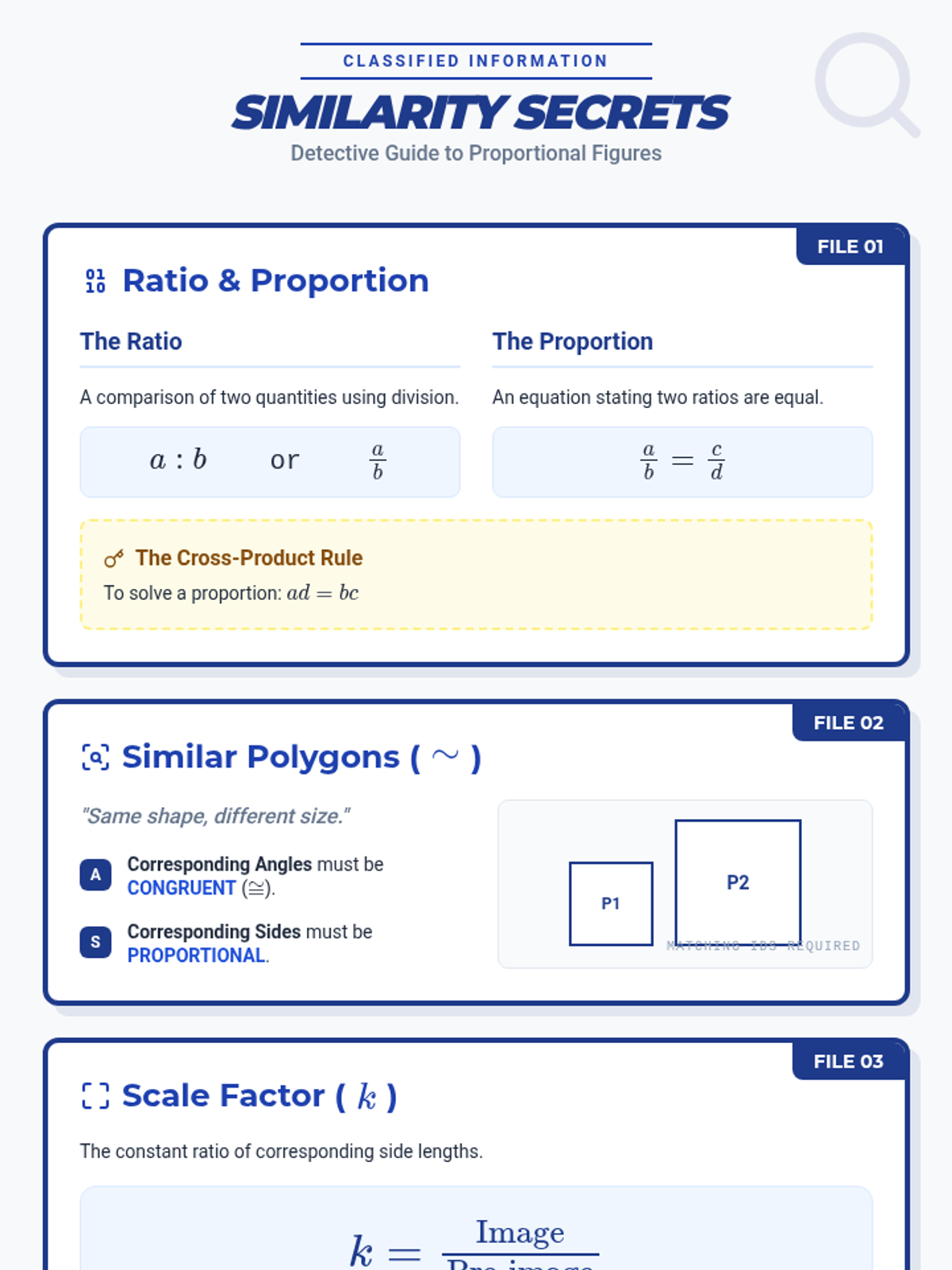 A comprehensive guide to understanding geometric similarity, covering ratios, proportions, and similarity criteria for polygons and triangles.