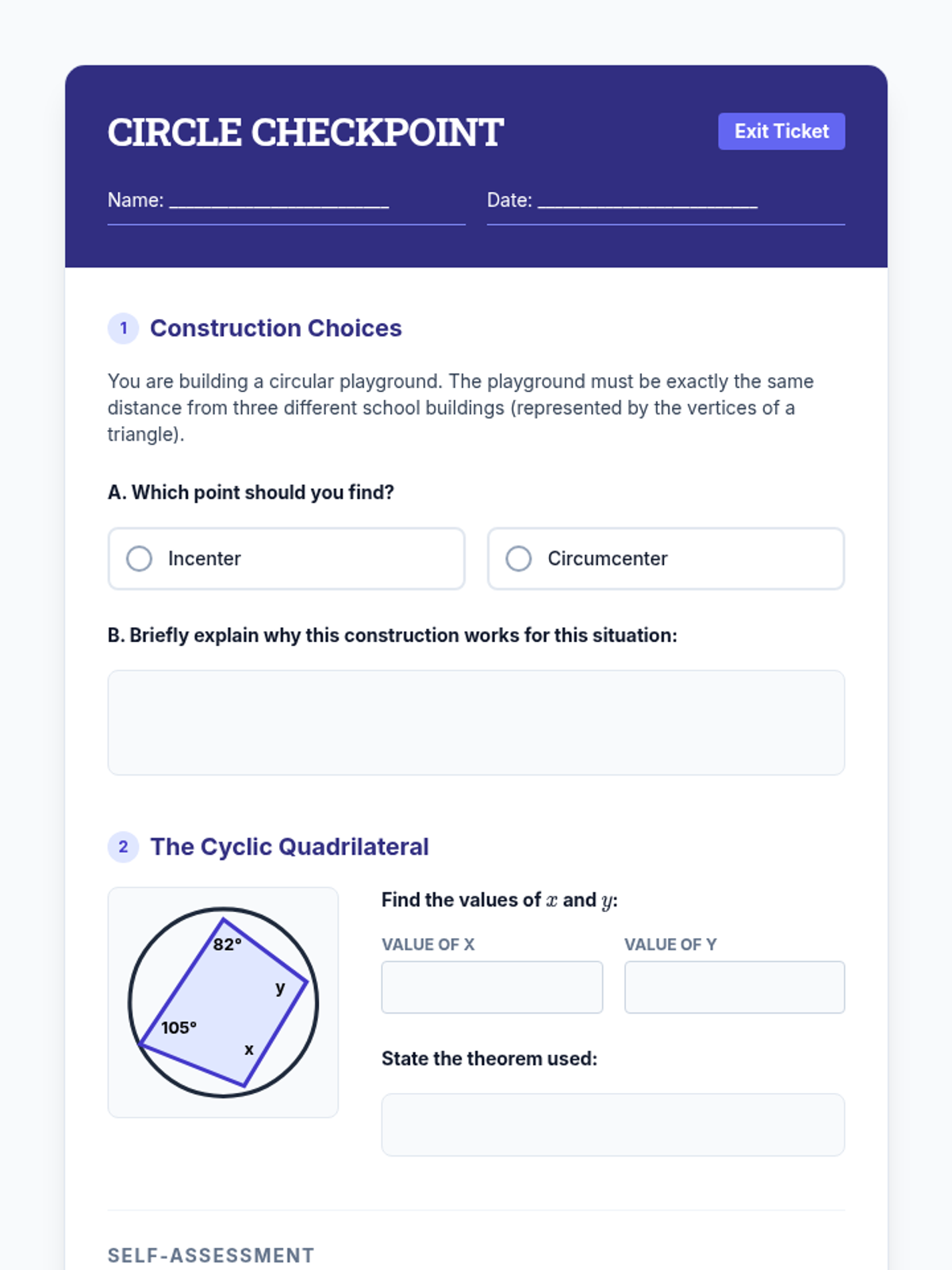 Students will construct perpendicular bisectors to find the circumcenter of acute, right, and obtuse triangles, exploring how the triangle's shape dictates the circumcenter's location.