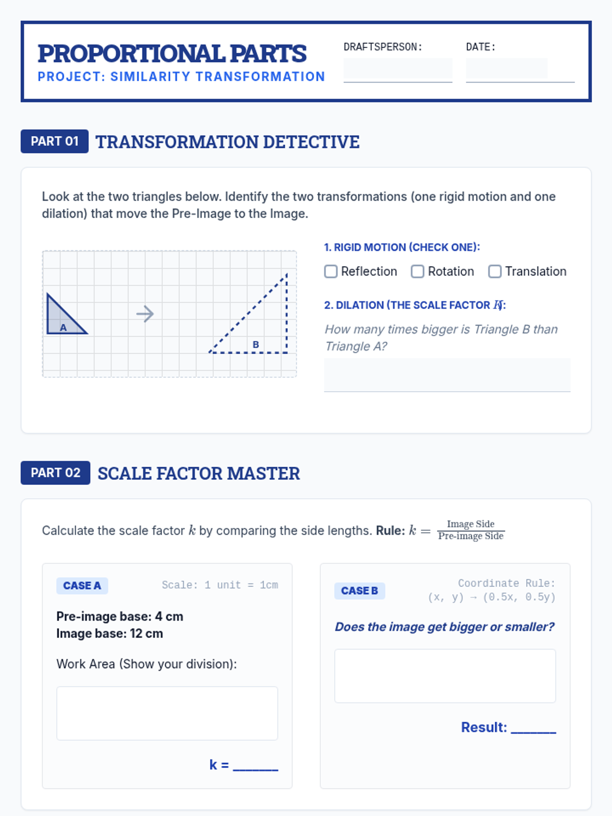 A targeted Tier 2 intervention lesson focusing on triangle similarity through the lens of transformations (dilations, rotations, reflections, and translations). Using a Concrete-Representational-Abstract (CRA) approach, students connect rigid motions and dilations to proportional sides and congruent angles.