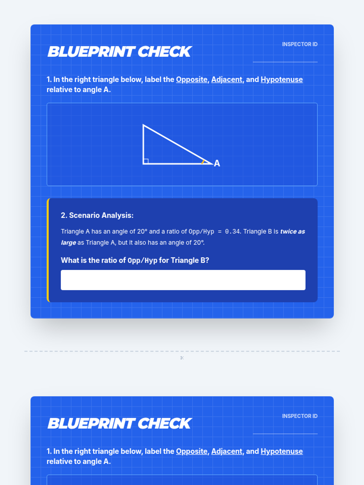 A targeted intervention lesson focusing on the similarity-based origin of trigonometric ratios, helping students understand why side ratios remain constant for specific angles in right triangles.