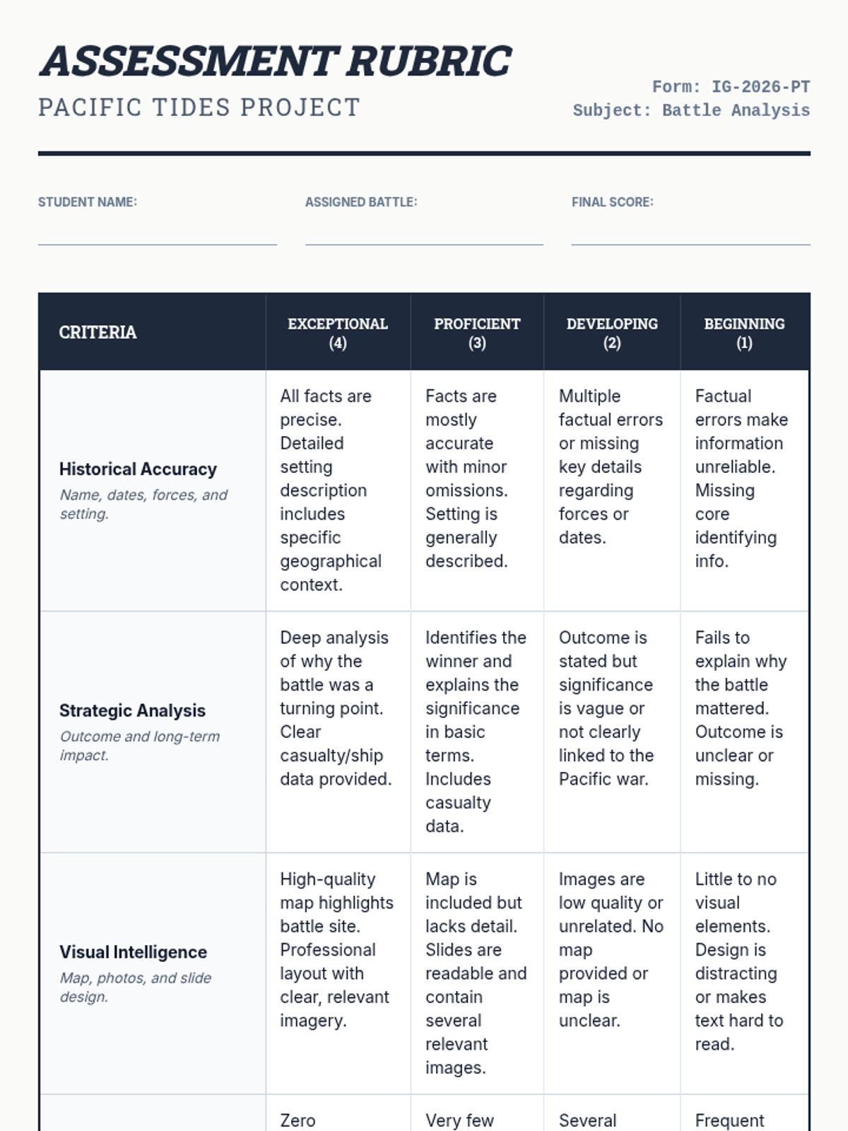 Project Scoring Rubric