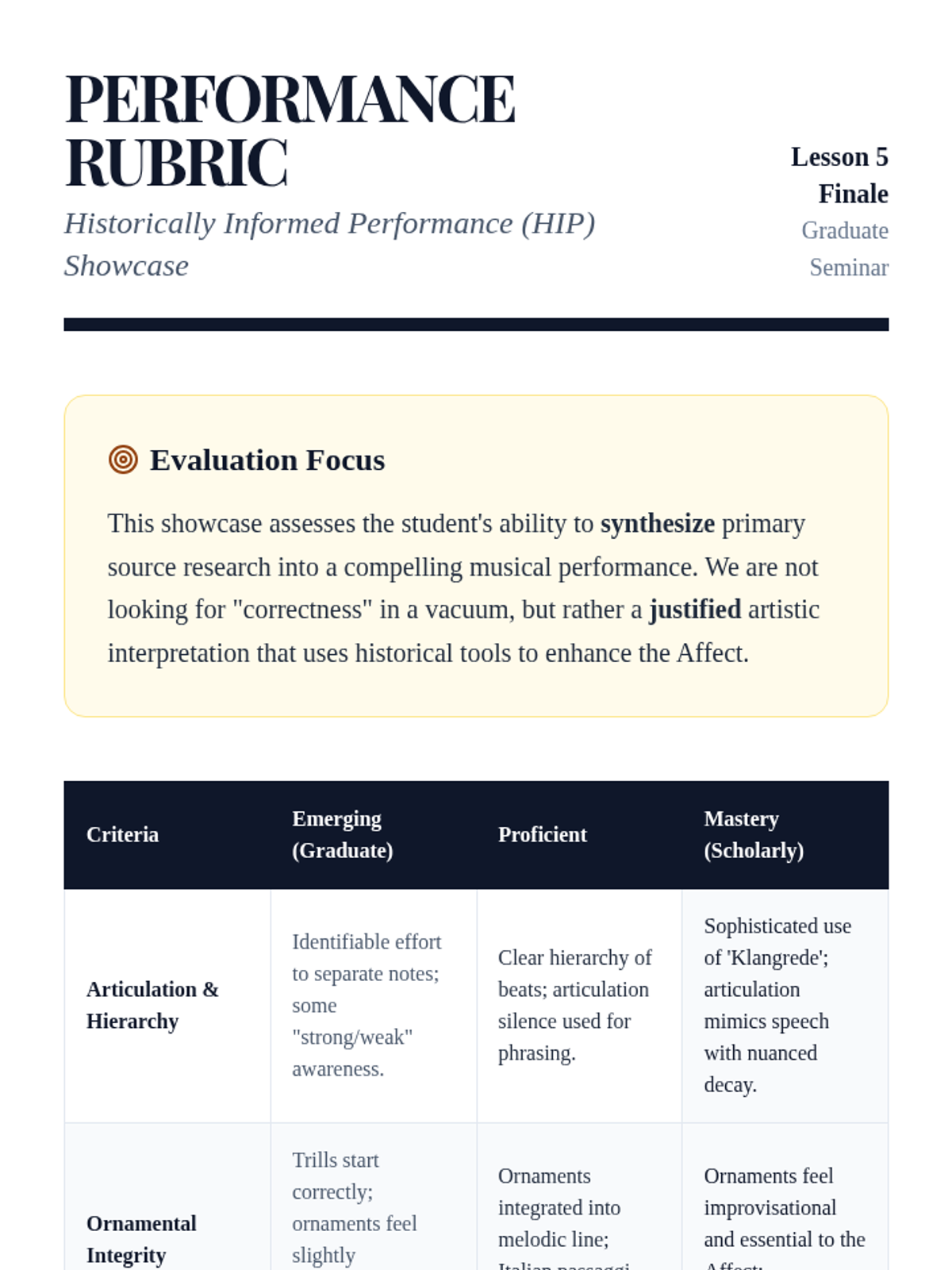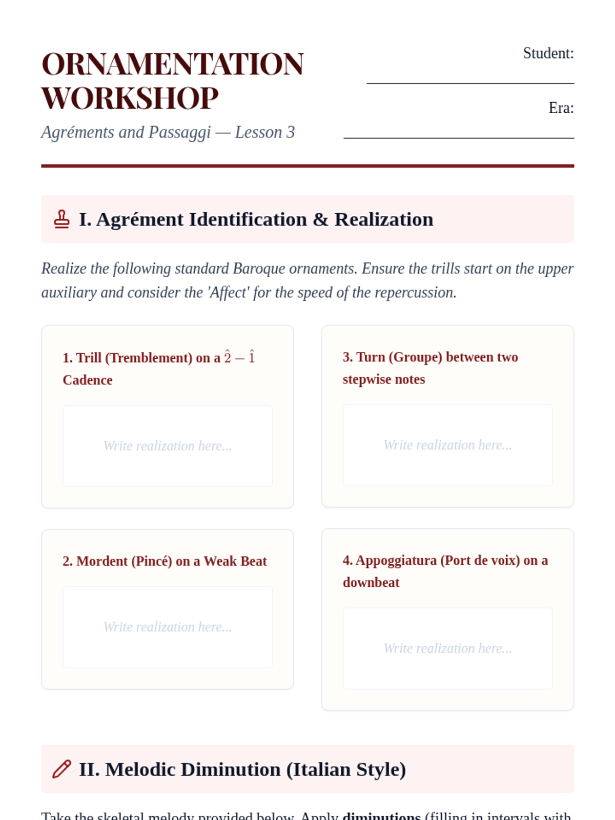 Students explore the rules and stylistic nuances of Baroque ornamentation, moving from mechanical execution to improvisational fluency.