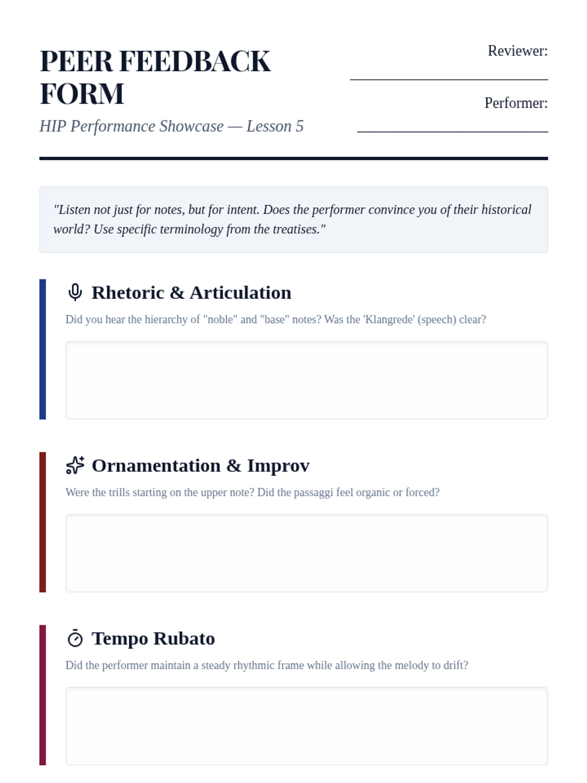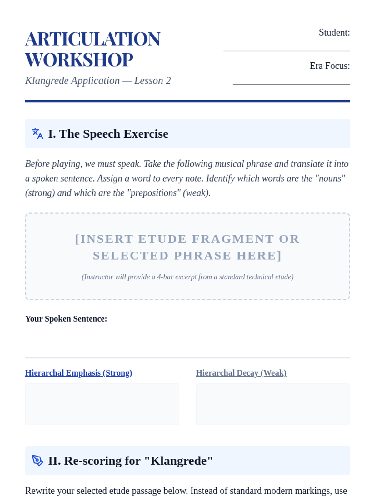 Focusing on 'Klangrede' (music as speech), students learn historical articulation hierarchies and how to apply them to phrasing.