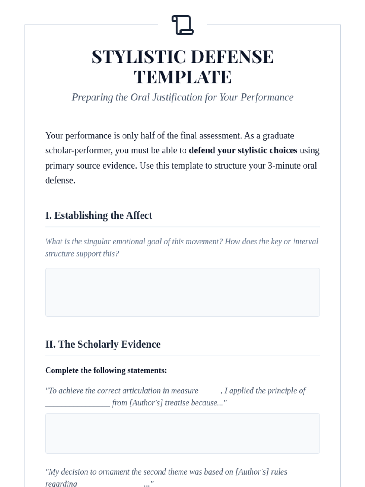 A final performance-based assessment where students demonstrate stylistic versatility and justify their interpretive choices.