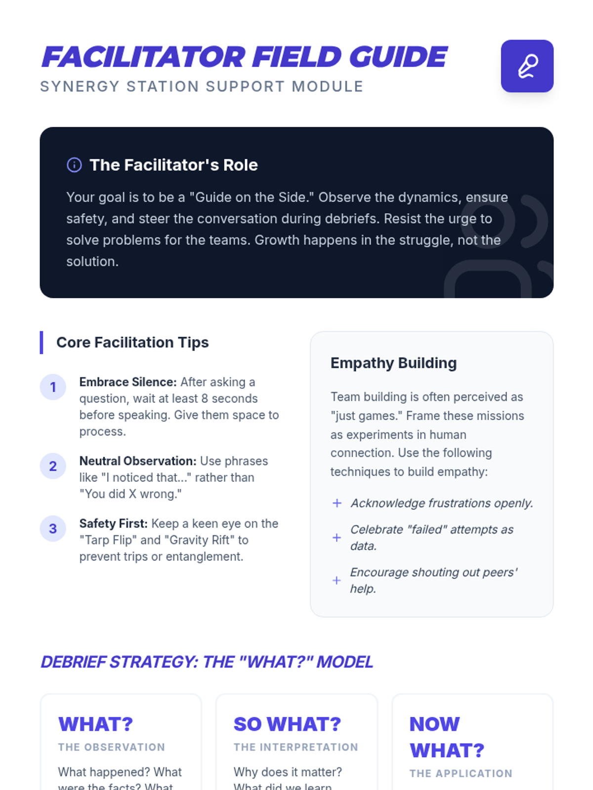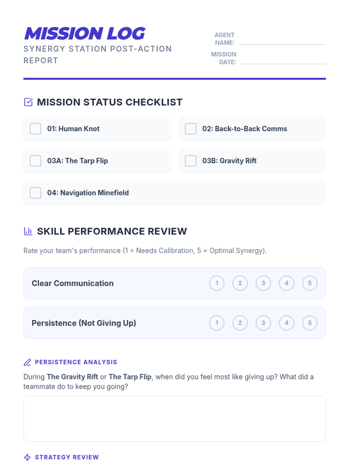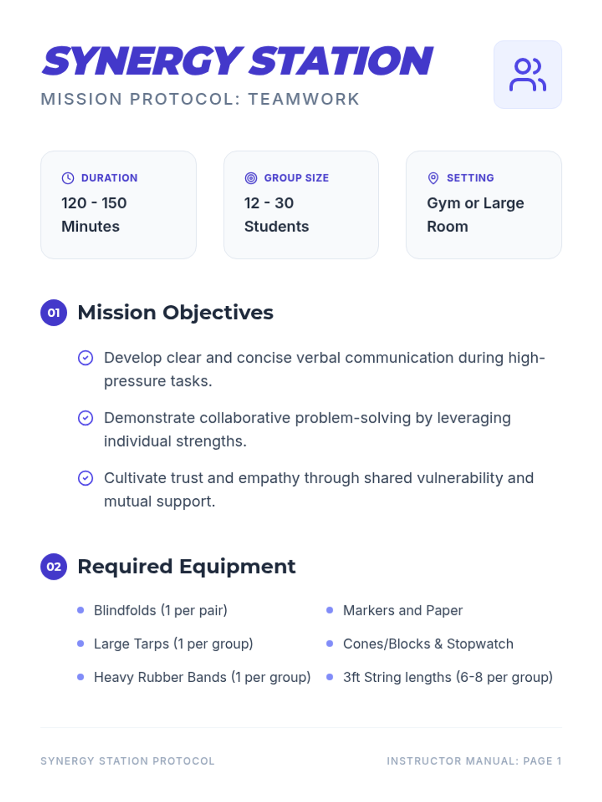 A comprehensive team-building lesson designed to foster cooperation, communication, problem-solving, and trust through a series of interactive 'missions'.