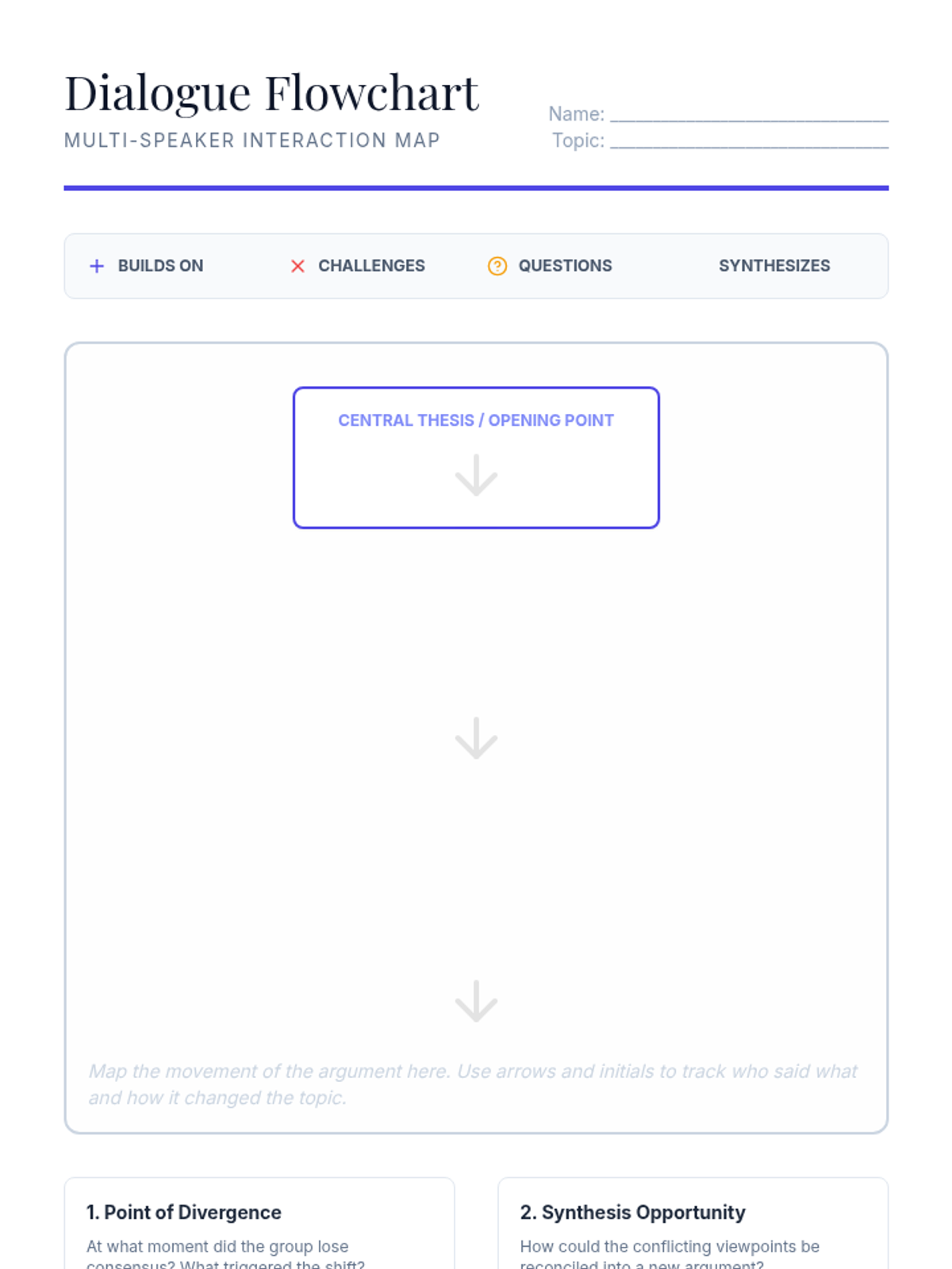 Focusing on multi-speaker interactions, students practice tracking seminar discussions and Q&A sessions. They learn to flowchart the evolution of ideas, identifying consensus, dissent, and how questions extend main lecture points.