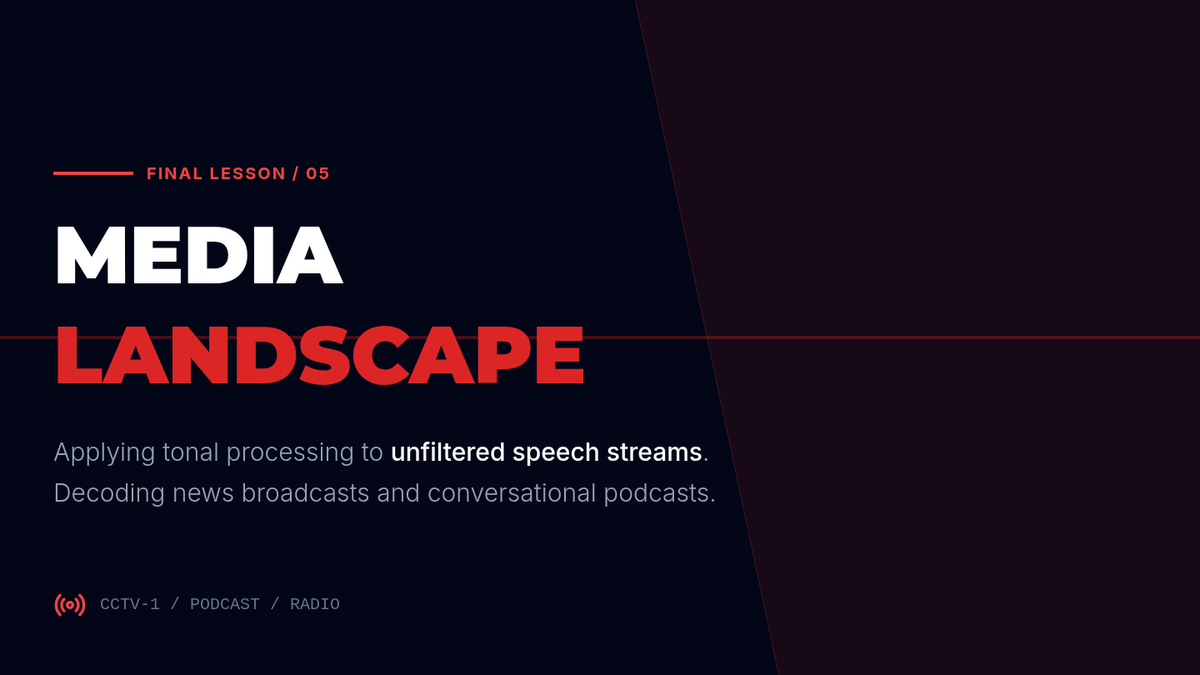 Applying tonal processing skills to authentic media sources, mapping the tonal landscape of natural, rapid speech.