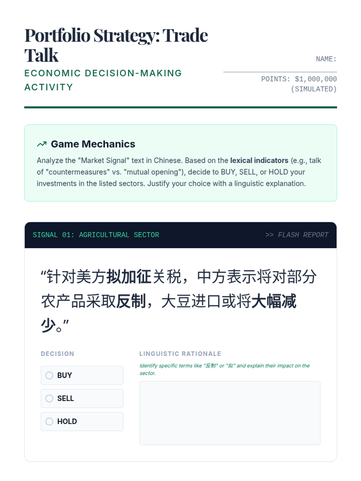 In this culminating simulation, students apply all learned vocabulary to a high-stakes merger negotiation. Teams represent different stakeholders and must draft terms, present data, and negotiate a final agreement using only formal professional Mandarin.