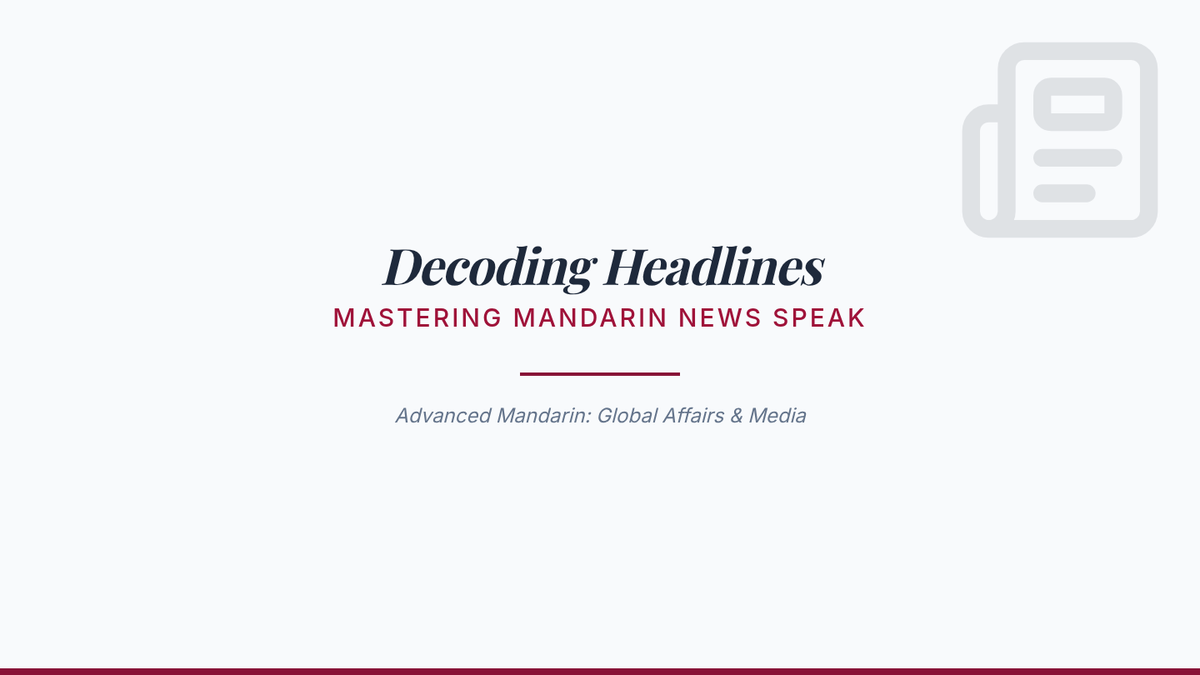 Focuses on the high-density syntax of Chinese news headlines, teaching students to decode abbreviations and expand compressed phrases into full grammatical structures.