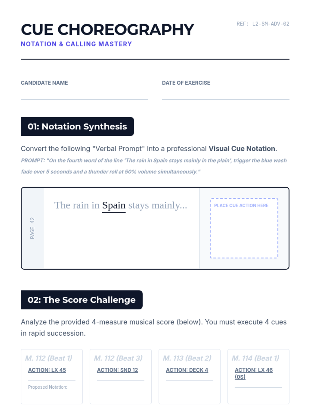 Master the technical art of prompt book creation and cue calling for complex productions. Focus on notation systems that bridge the gap between artistic vision and technical execution.
