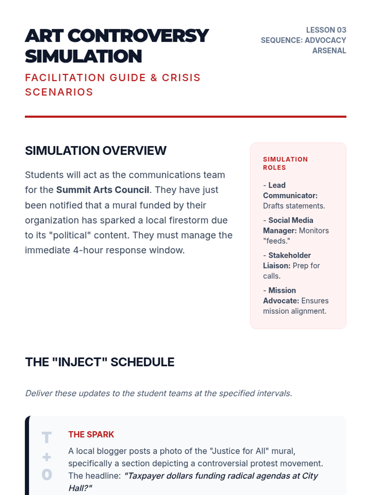 Examine high-profile controversies in publicly funded art and develop strategic crisis protocols. Students simulate responding to media scrutiny and stakeholder pressure.
