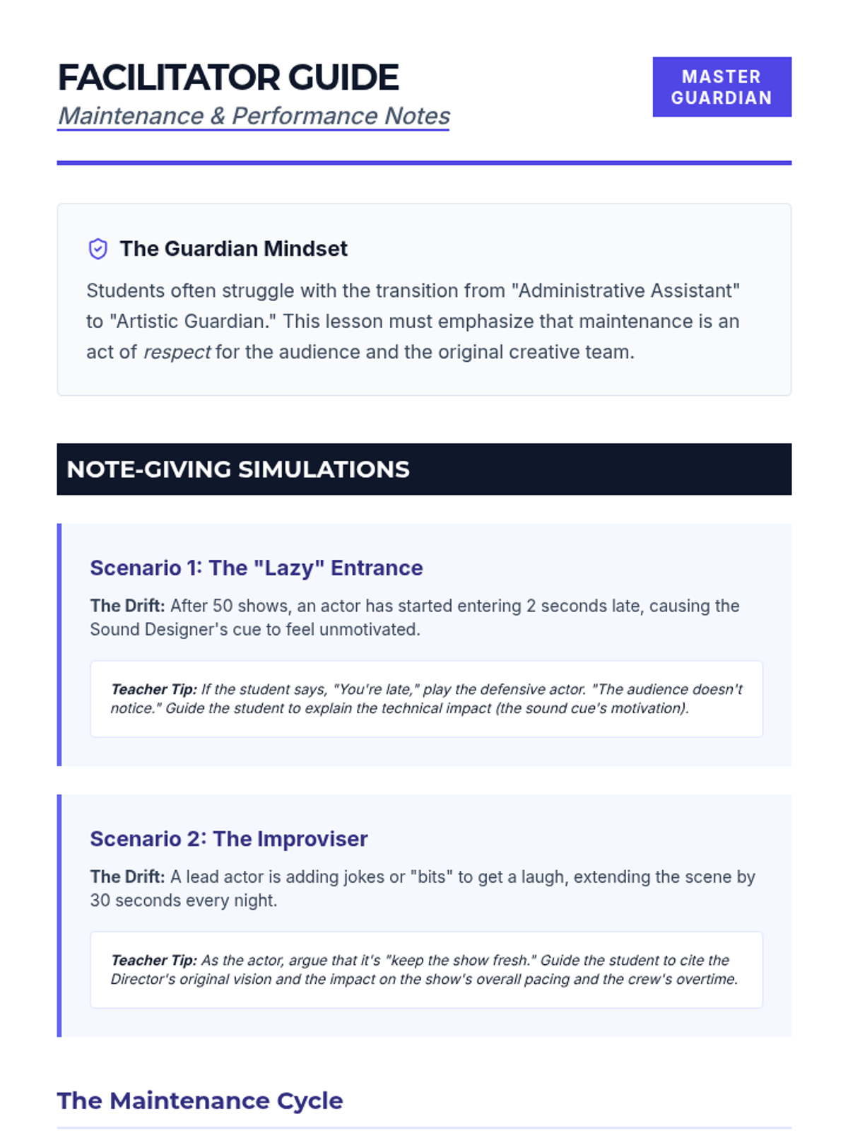 Students analyze IATSE, AEA, and USA contracts to understand jurisdictional boundaries and labor laws. The lesson culminates in a high-stakes grievance simulation.