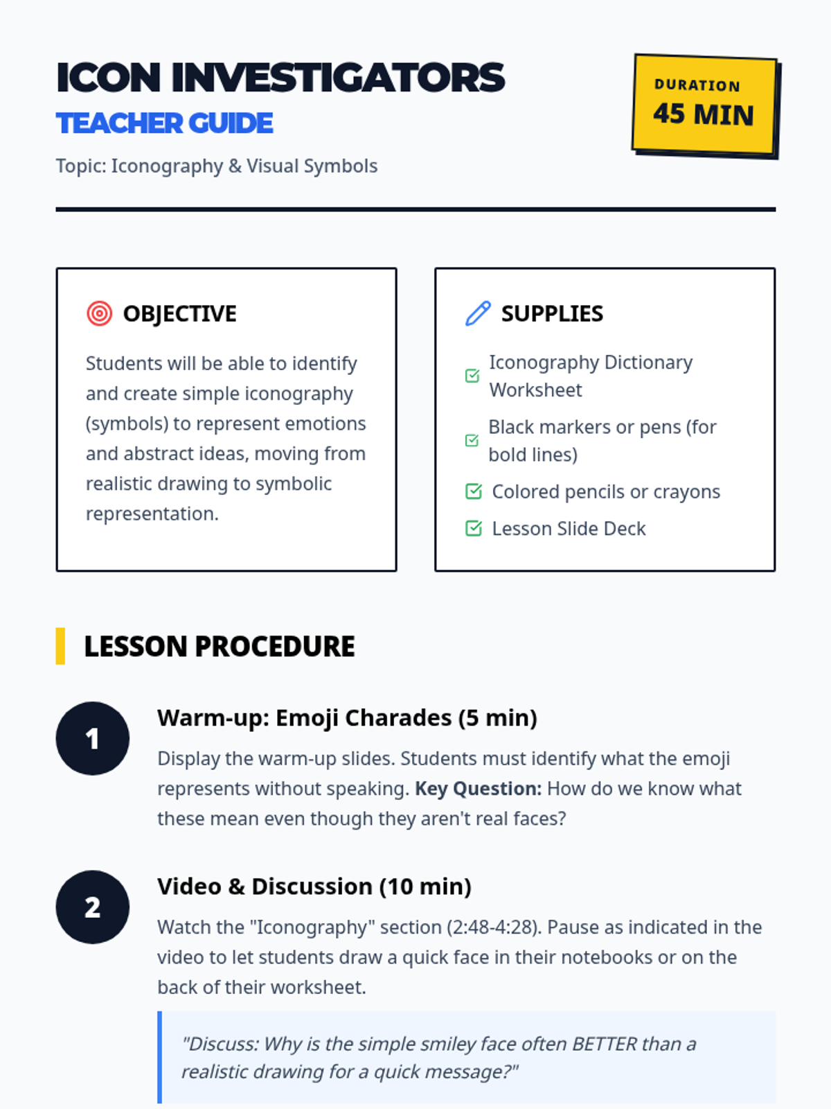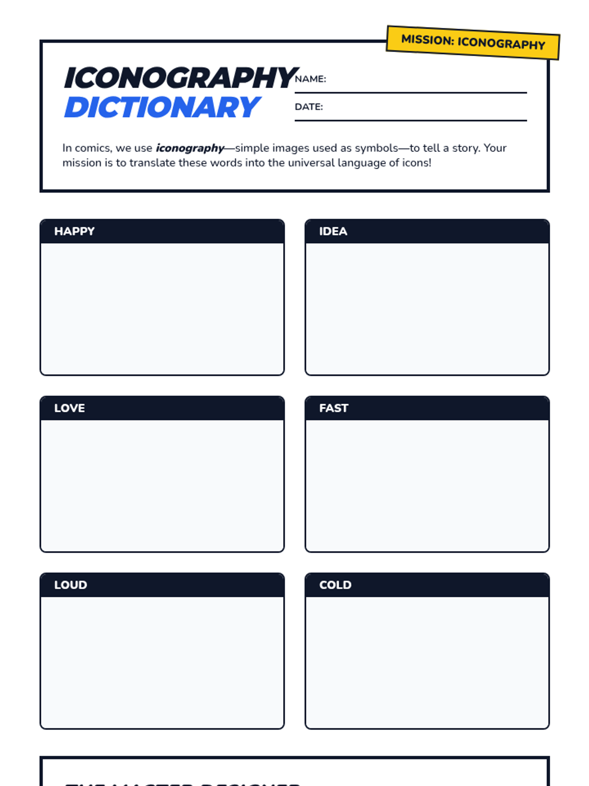 A fun, comic-themed lesson where 3rd graders learn to communicate emotions and ideas through simple icons, inspired by the grammar of graphic novels.