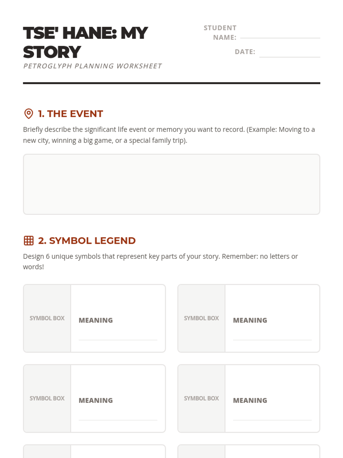 Students will explore the history of Native American petroglyphs (specifically Newspaper Rock), analyze how symbols convey complex narratives, and create their own visual history using symbolic language.
